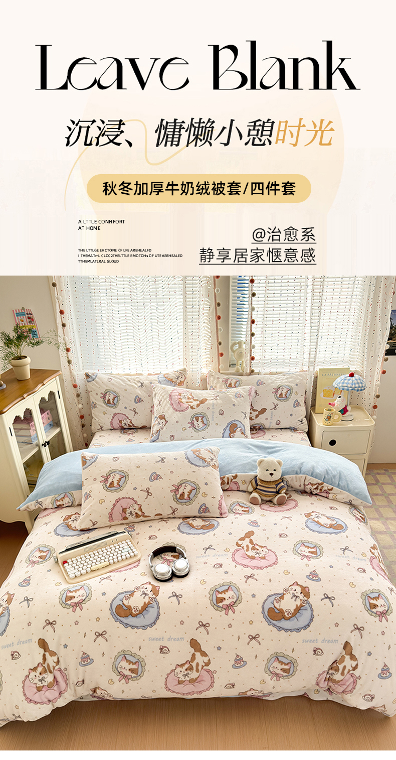 当前位置: 91家纺网 > 商品网购 > 床品套件 > 四件套 > 牛奶绒四件套 > 沐芷 2025 高克重加厚A类牛奶绒四件套珊瑚绒卡通简约三件套 【绒】猫咪礼物