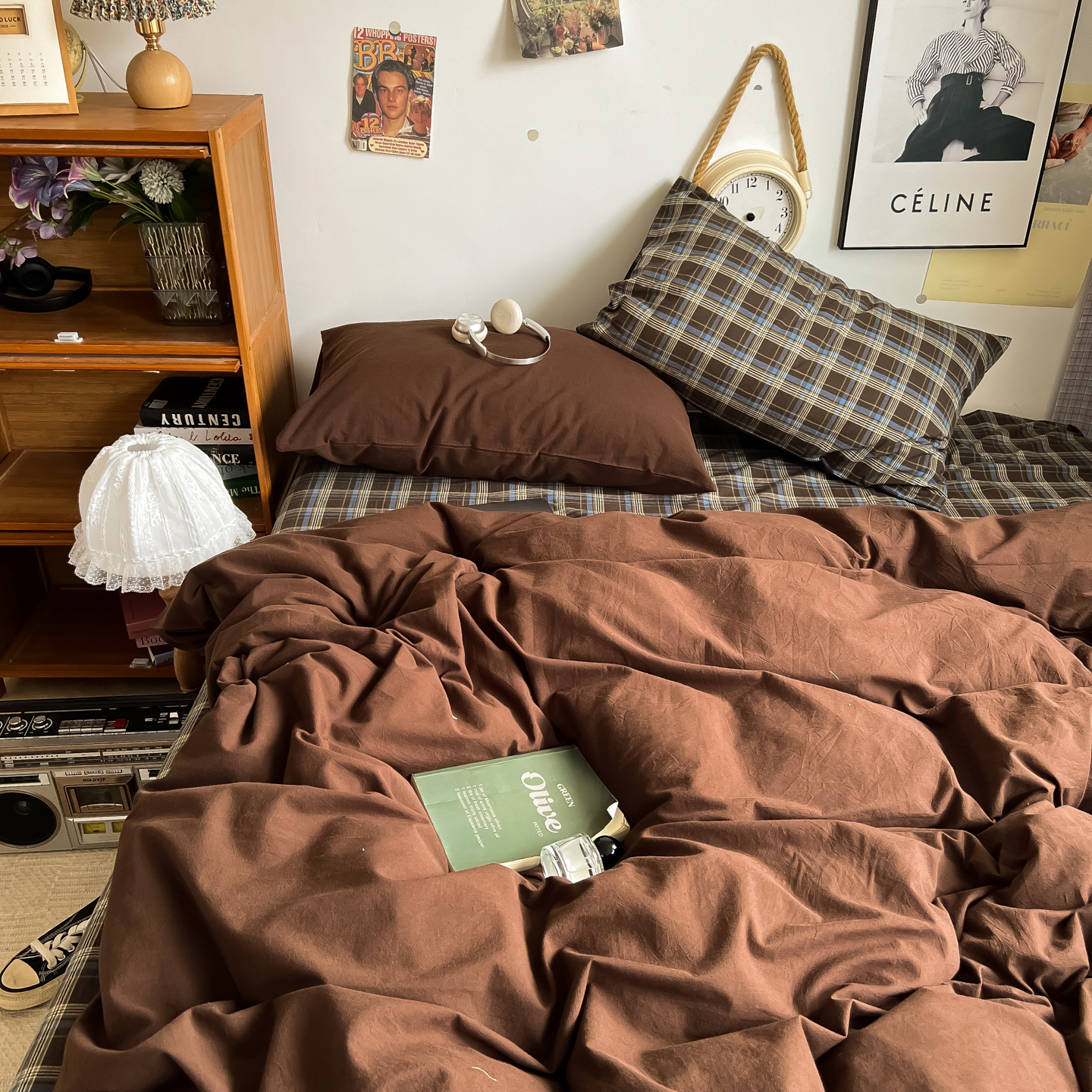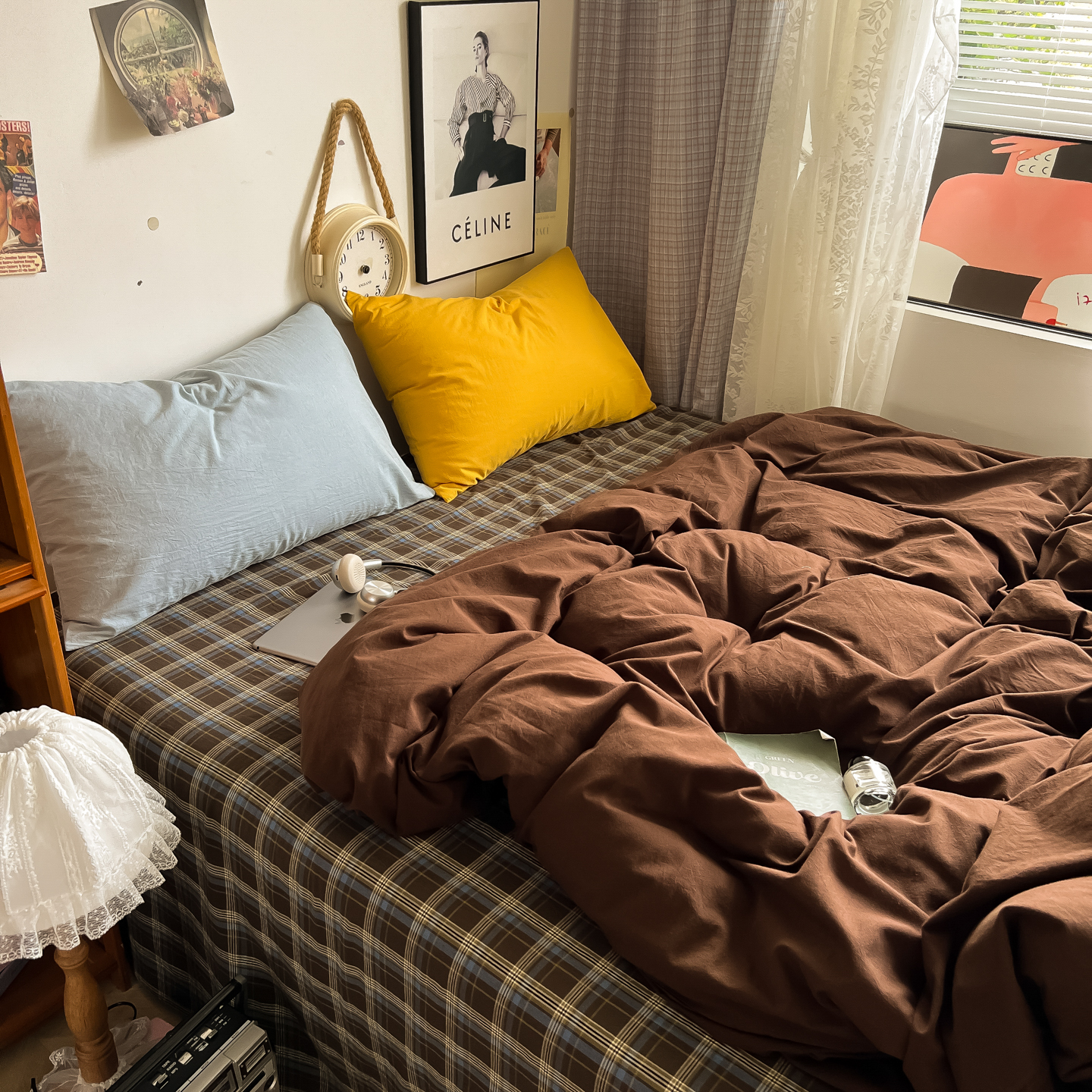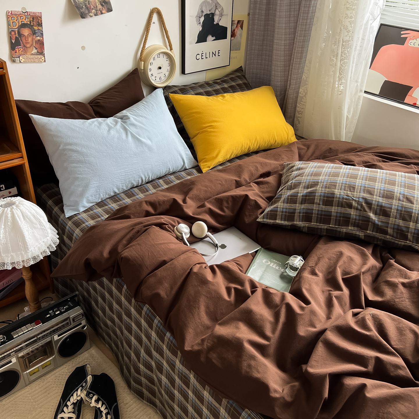 当前位置: 91家纺网 > 商品网购 > 床品套件 > 四件套 > 全棉普通四件套 > 对白 2025新款全棉纯棉色织水洗棉四件套-咖啡格纹 咖啡格纹(枕套海蓝+格子)