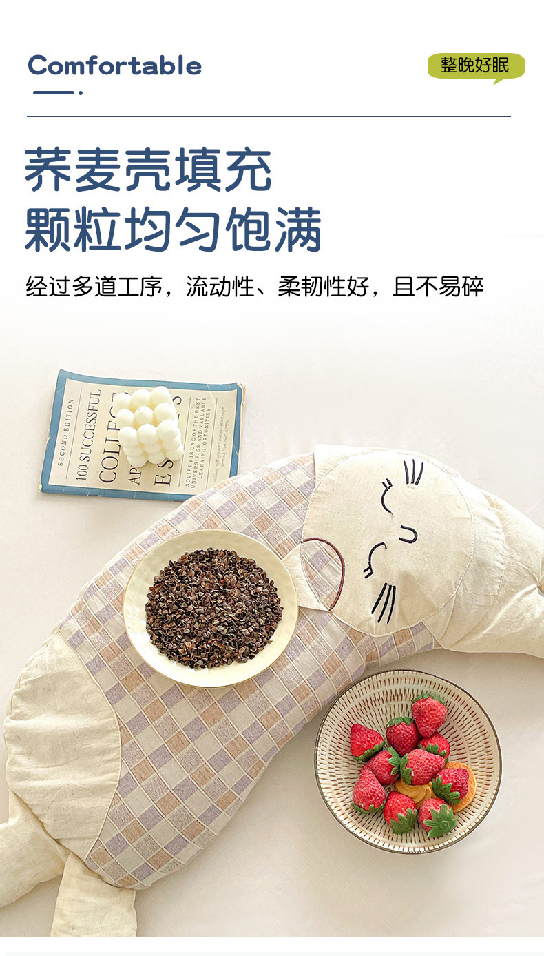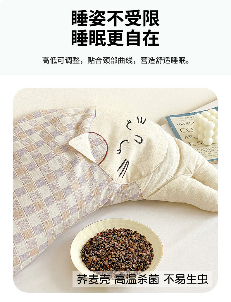 (总)亦帆枕芯 2025秋冬新款棉麻可爱猫荞麦枕可拆洗枕芯加枕套