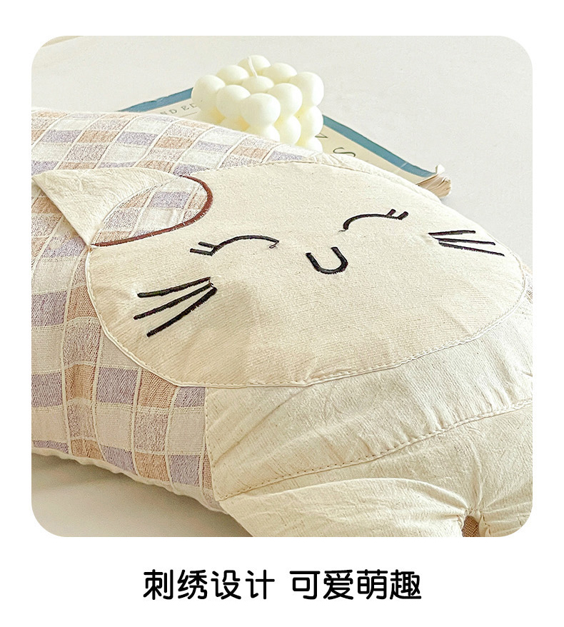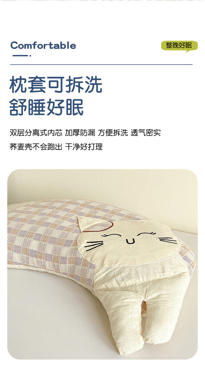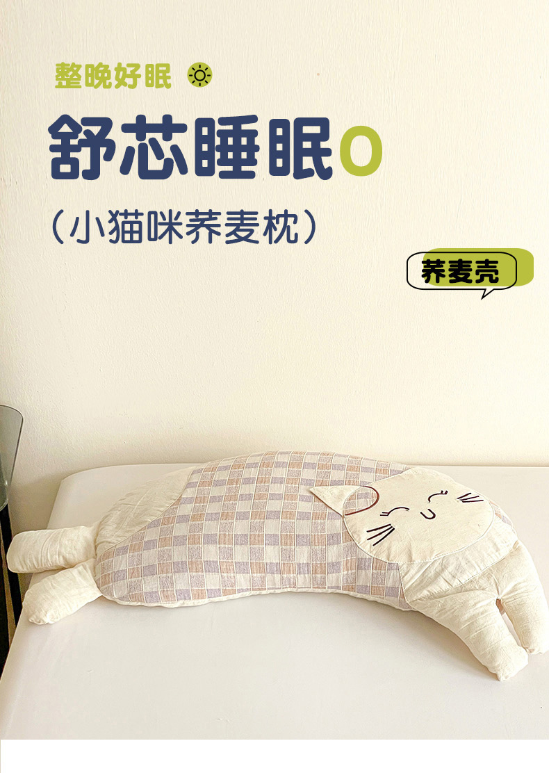 商品名称:(总)亦帆枕芯 2025秋冬新款棉麻可爱猫荞麦枕可拆洗枕芯加枕套