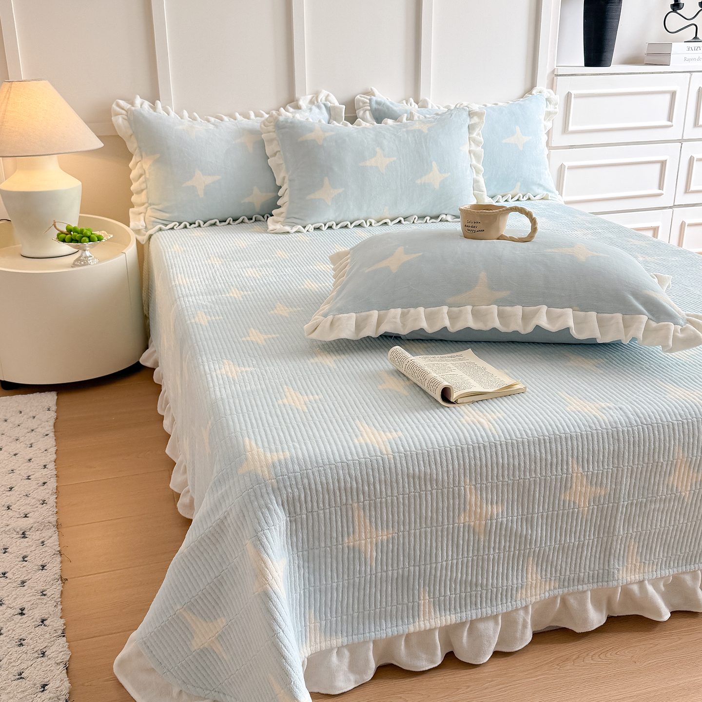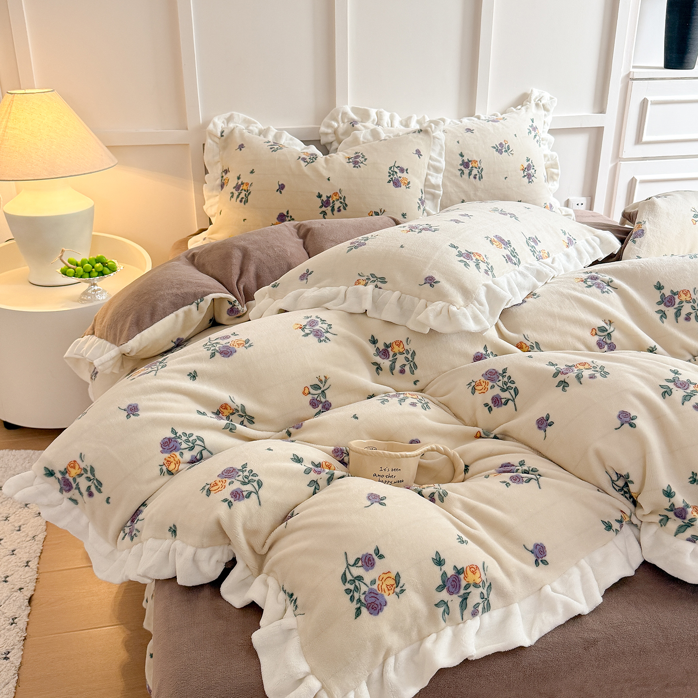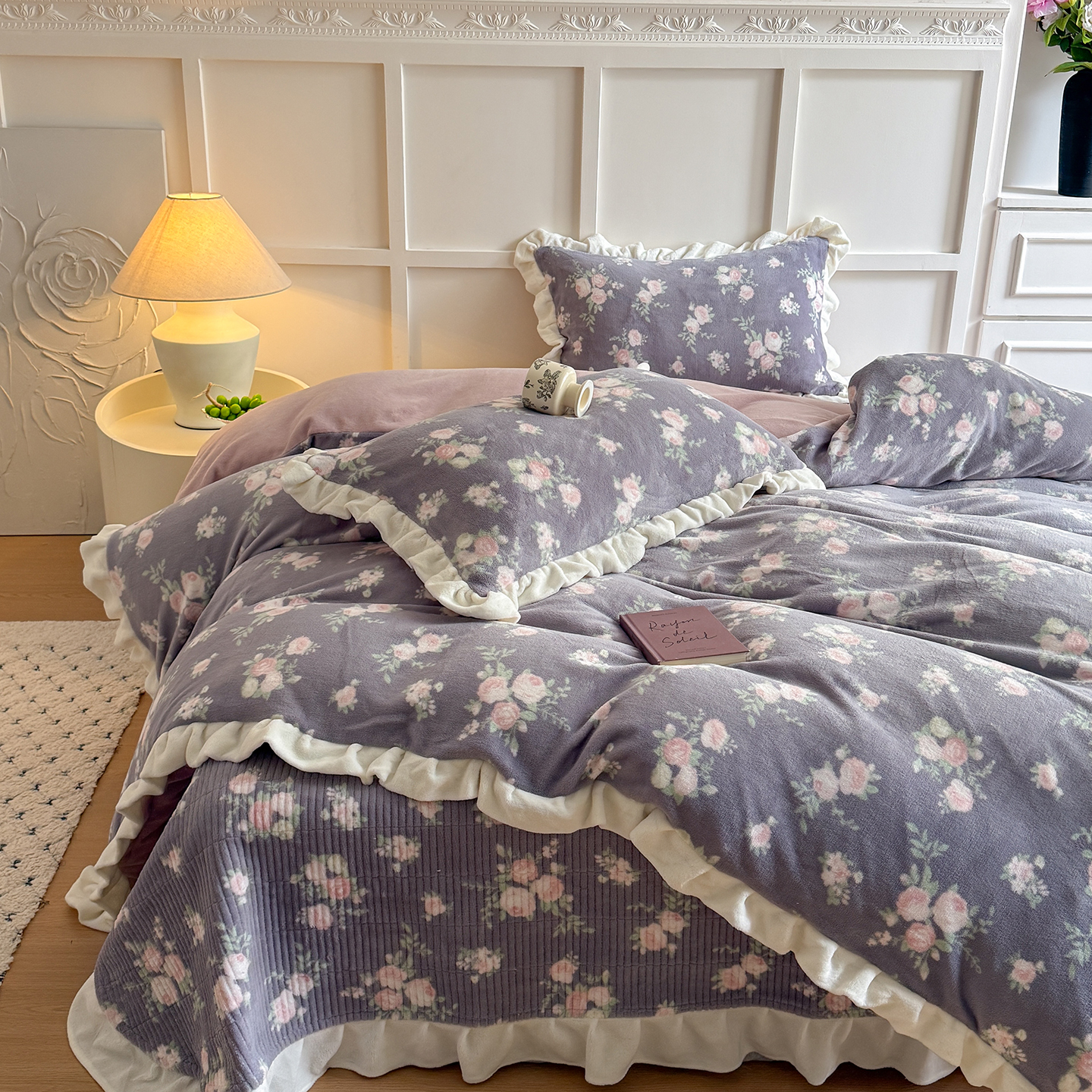 当前位置: 91家纺网 > 商品网购 > 床品套件 > 四件套 > 牛奶绒四件套 > 潘朵拉家纺 2025新款法式牛奶绒双层花边四件套 奈雪