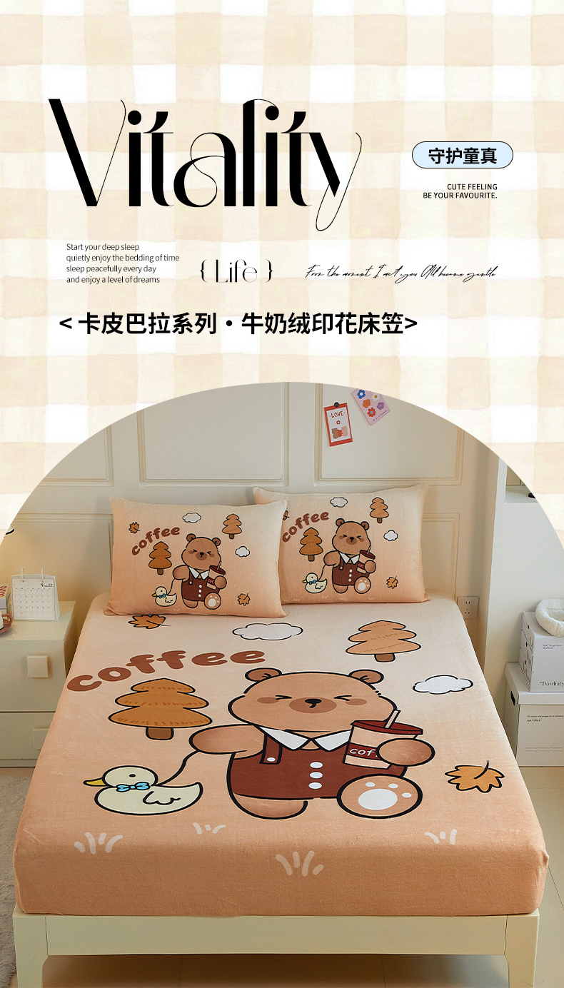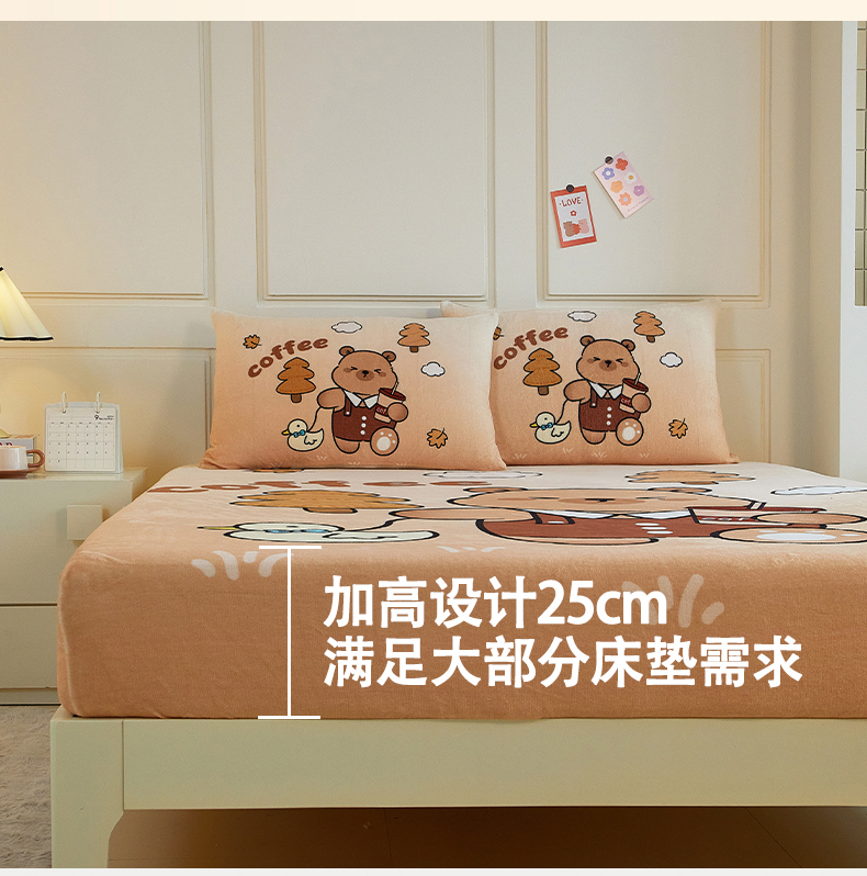 蘭菲家纺 2025新款保暖舒适卡皮巴拉牛奶绒系列单品床笠 拉小鸭