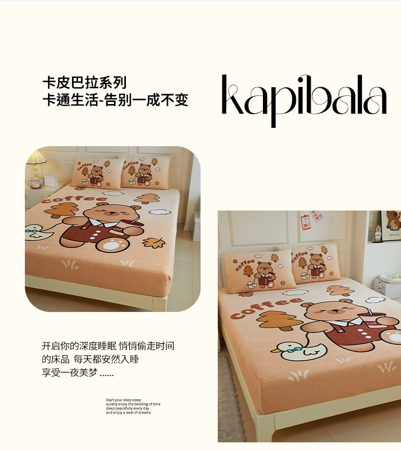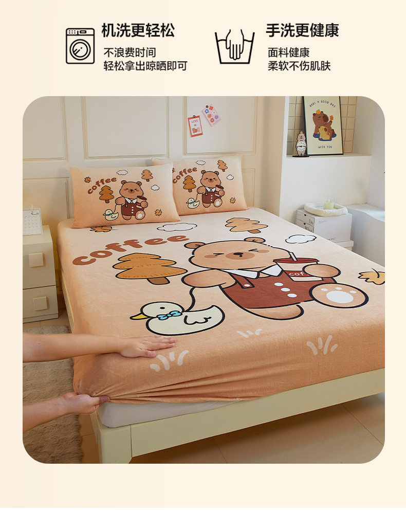 商品名称:蘭菲家纺 2025新款保暖舒适卡皮巴拉牛奶绒系列单品床笠 拉小鸭
