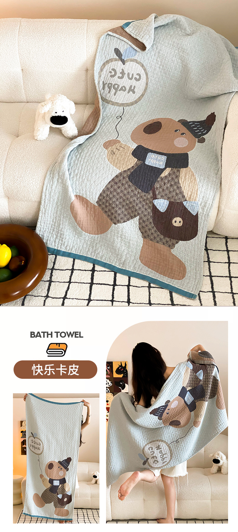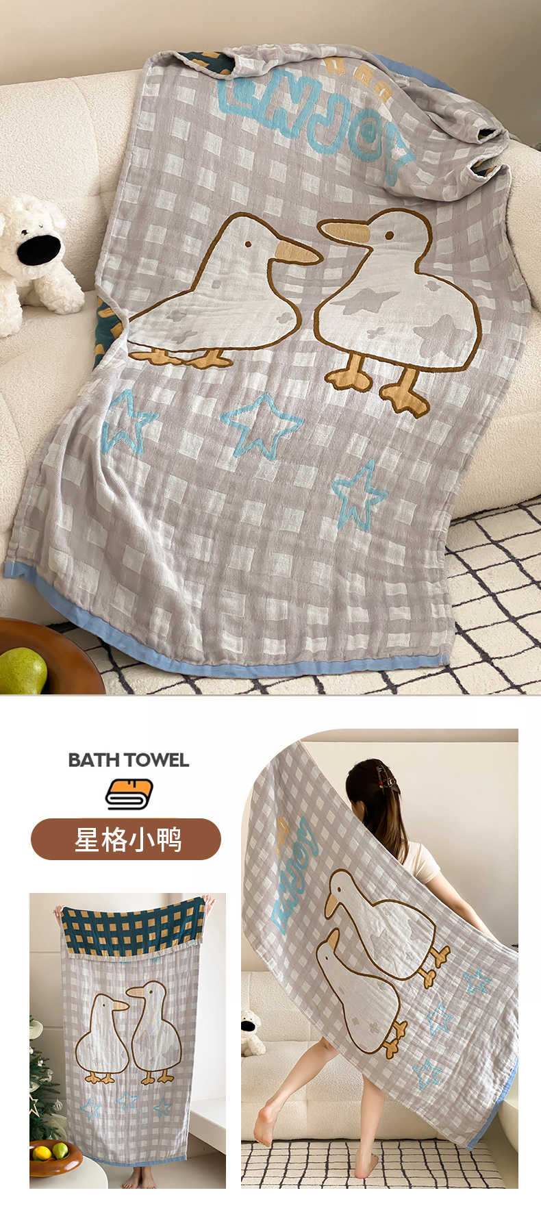 当前位置: 91家纺网 > 商品网购 > 居家日用 > 毛巾/浴巾/浴袍 > 浴巾 > 麻依 2025新款软萌纱布浴巾四层全棉纱布浴巾 心心小象 80*160