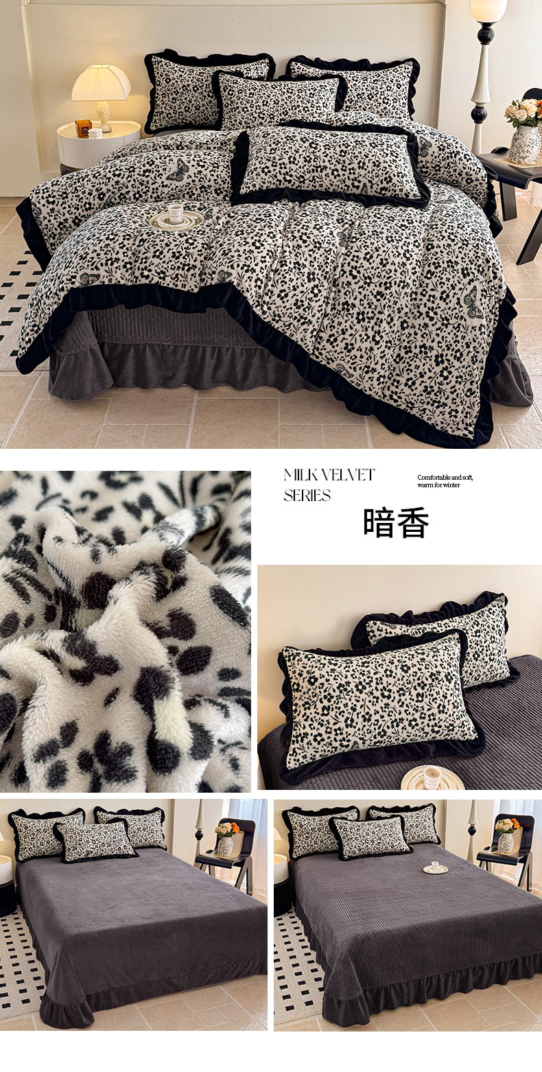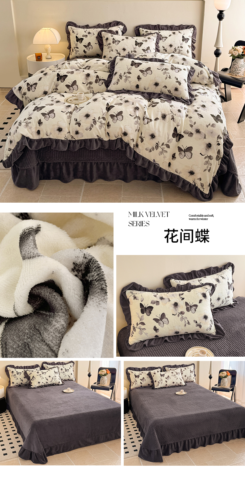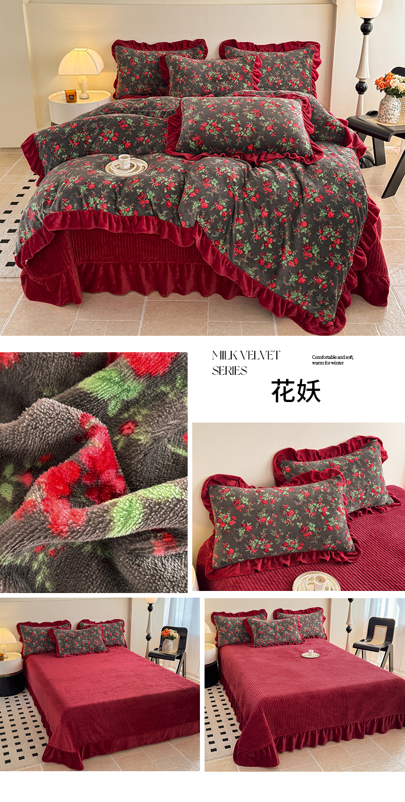 当前位置: 91家纺网 > 商品网购 > 床品套件 > 四件套 > 牛奶绒四件套 > 慕晨 2025新款花边牛奶绒床盖四件套 玫瑰絮语