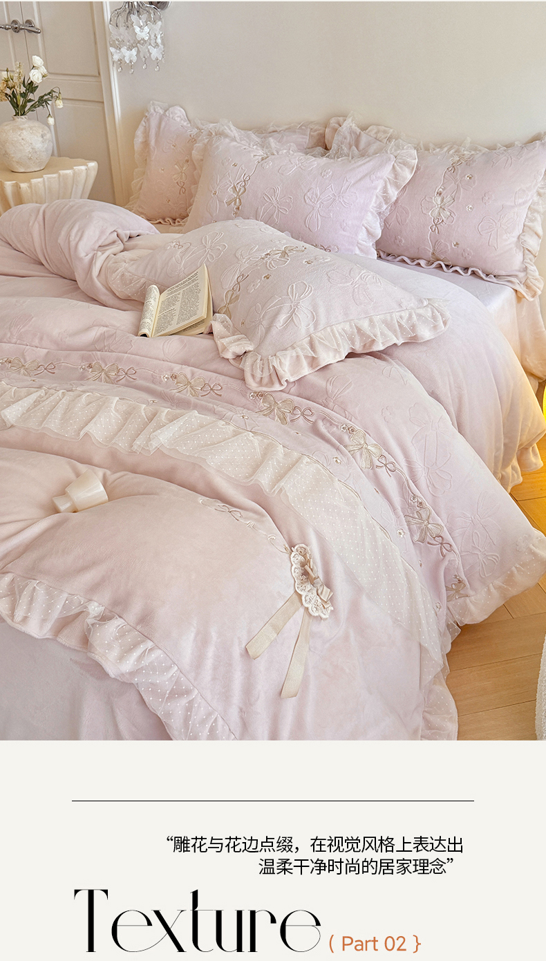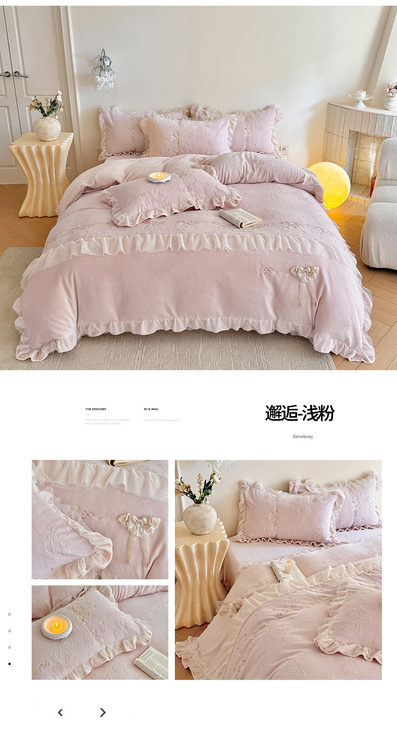 当前位置: 91家纺网 > 商品网购 > 床品套件 > 四件套 > 牛奶绒四件套 > (总)雅高家居 2025新款精致刺绣双层蕾丝花边公主风高克重全消光韩版加厚牛奶绒四件套