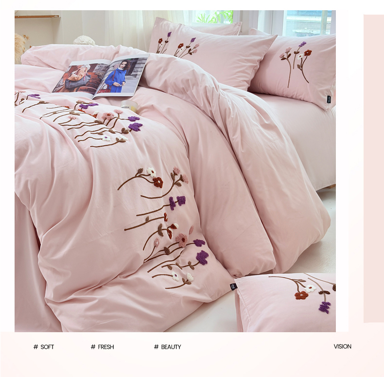 当前位置: 91家纺网 > 商品网购 > 床品套件 > 四件套 > 毛巾绣四件套 > 未来家居 2025新款秋冬全棉加厚磨毛纯色毛巾绣花款工艺四件套 薰衣草-粉