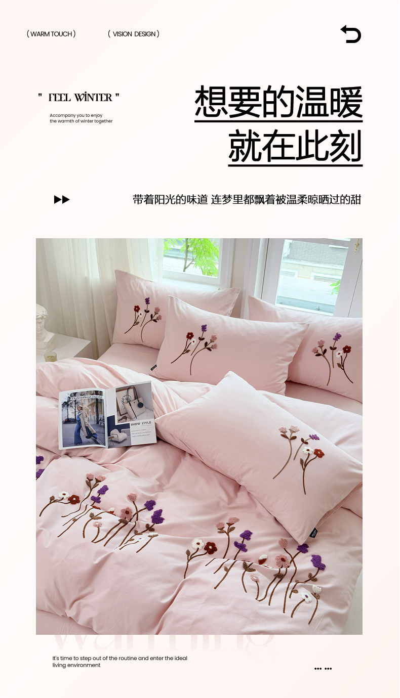 • 91家纺网 家纺一手货源 找家纺 未来家居 2025新款秋冬全棉加厚磨毛纯色毛巾绣花款工艺四件套 薰衣草-粉