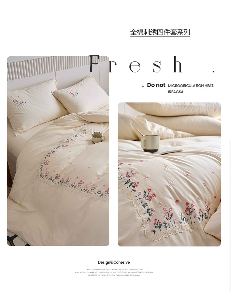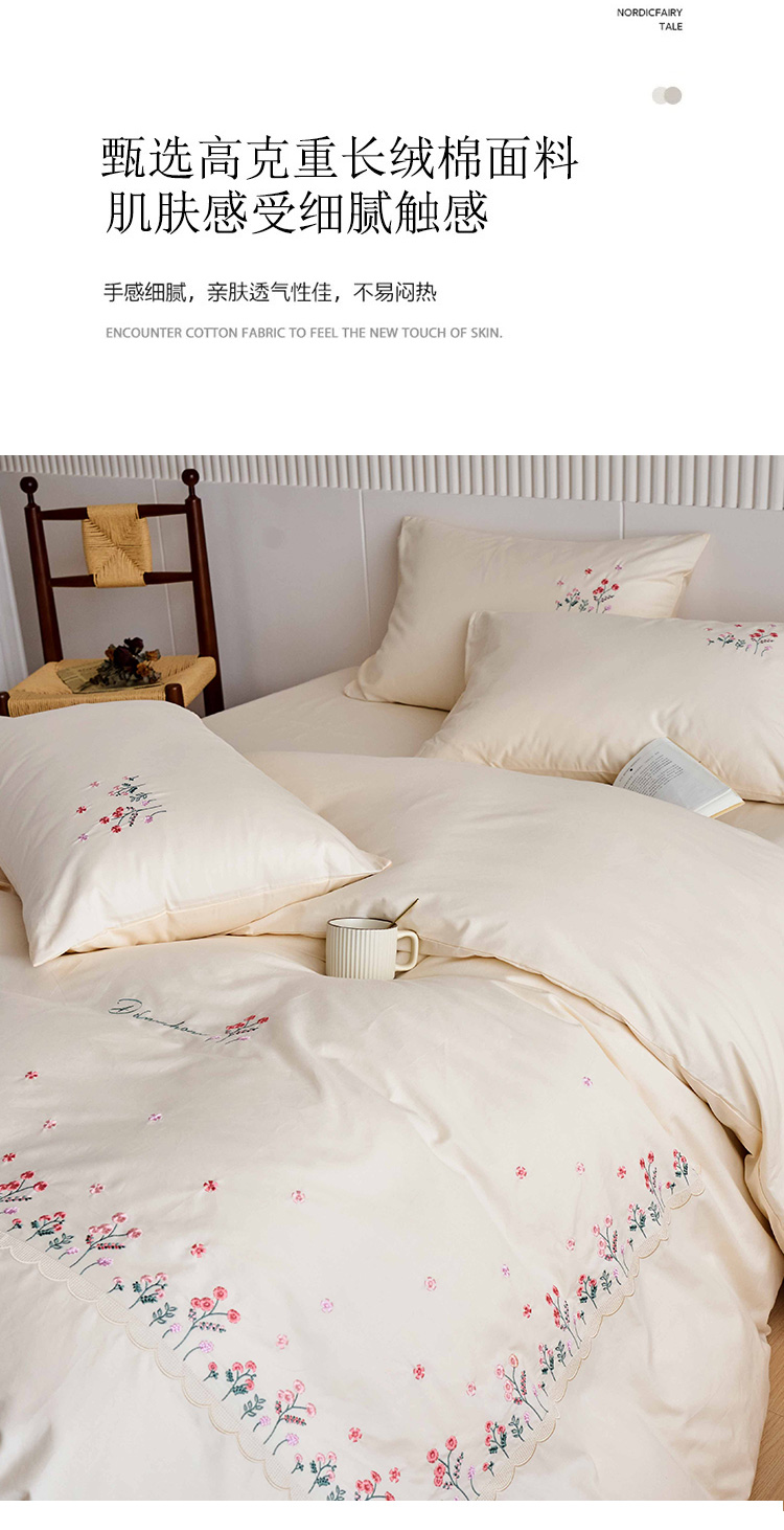 商品名称:悦然毛巾被 2025新款全棉纯棉斜纹毛巾绣四件套 花语情怀白+紫