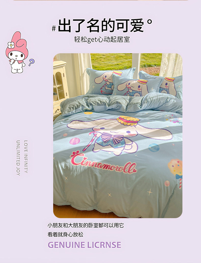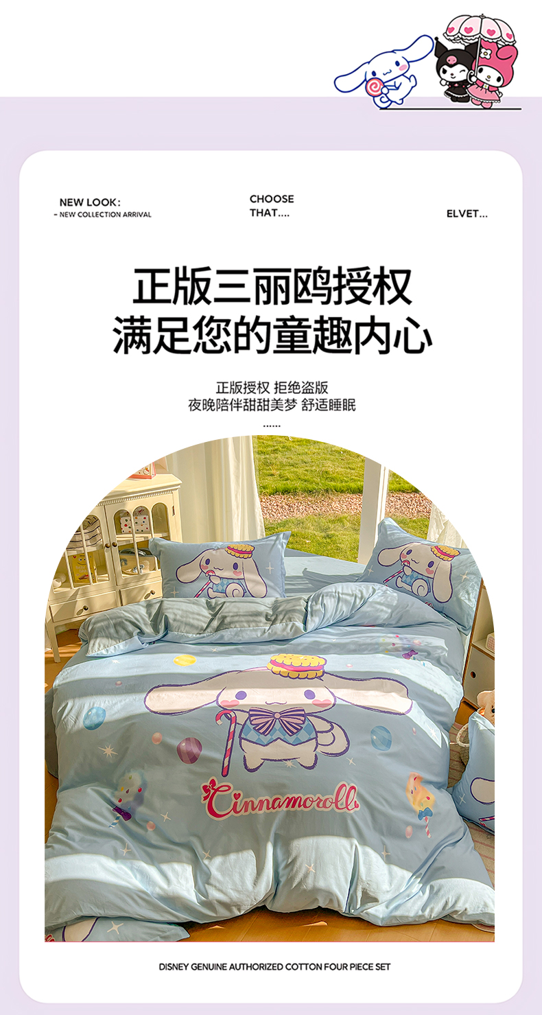 (总)浩诚 2026新款专版三丽鸥hellokitty库洛米正版授权大版全棉纯棉四件套,爱心甜点,比心库洛米,草莓KT,打工美乐蒂,飞行员,花花美乐蒂,花园派对,浪漫美乐蒂,美美KT,三丽鸥家族,甜甜库洛米,甜心宝贝,甜心库洛米,条纹玉桂狗,晚安库洛米,旋转玉桂狗,音乐KT,樱桃库洛米,云朵天使,云朵玉桂狗