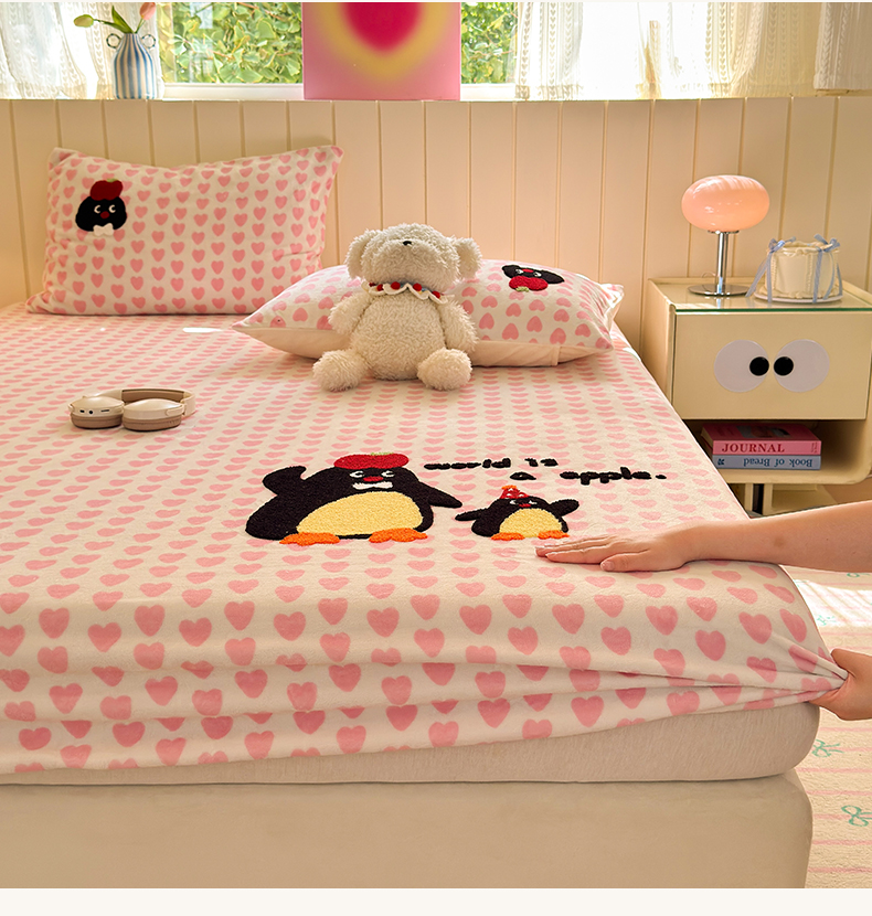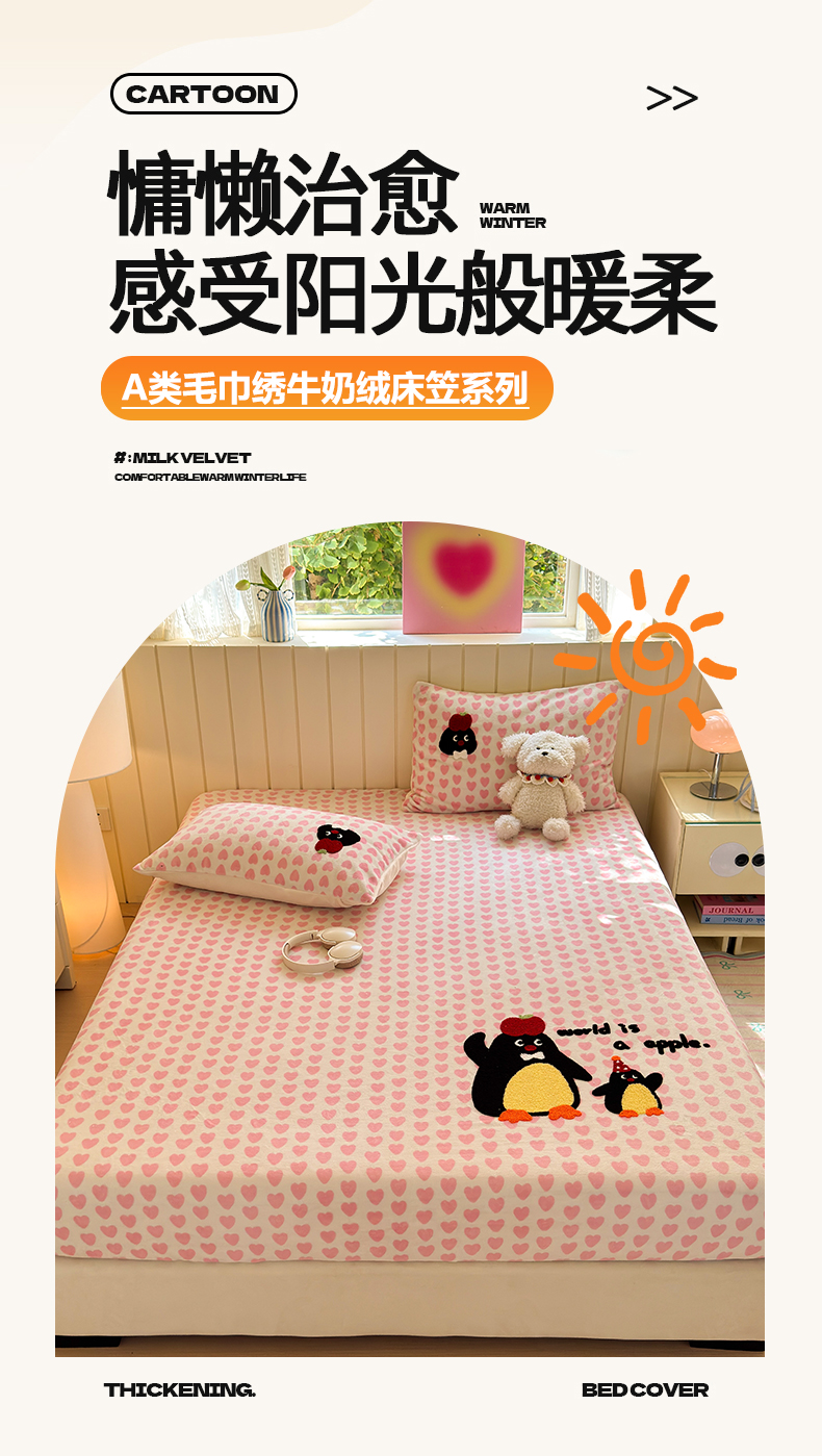 寐居家纺 2025新款毛巾绣牛奶绒床笠 红果果