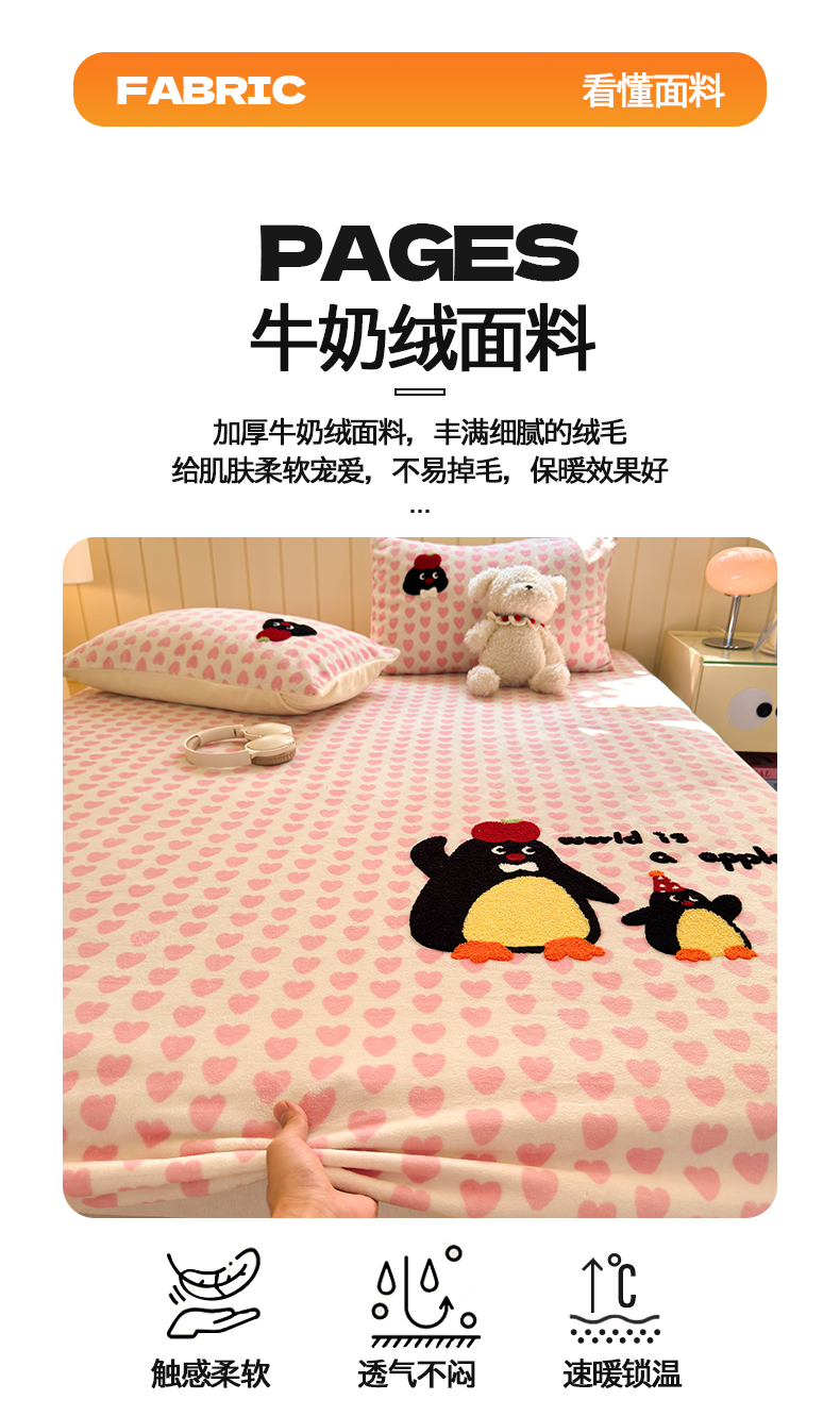 (总)寐居家纺 2025新款贴布绣高克重牛奶绒四件套,安吉拉喵,查理狗,粉糯kitty,皮皮布布