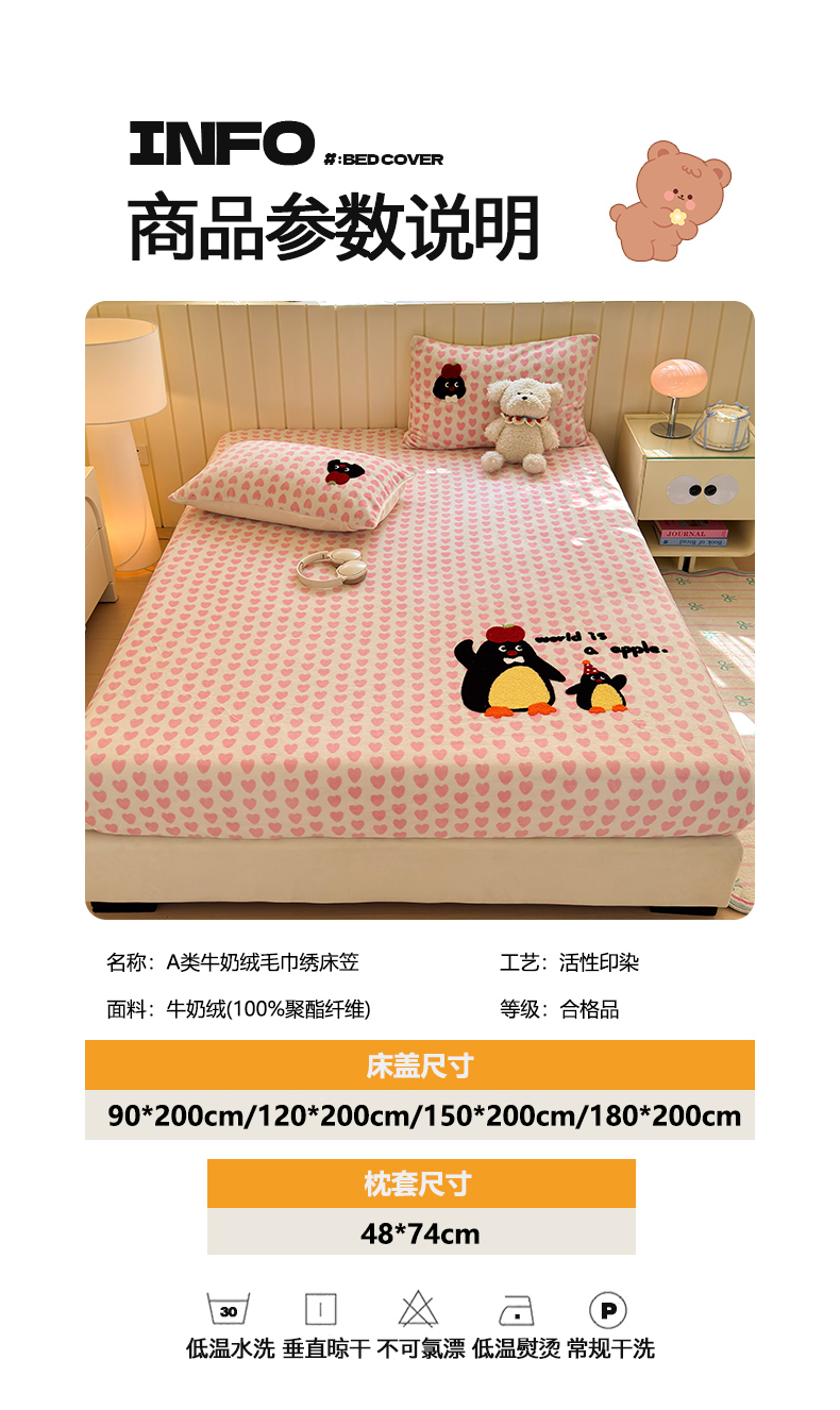 商品名称:寐居家纺 2025新款毛巾绣牛奶绒床笠 红果果