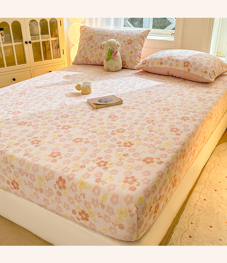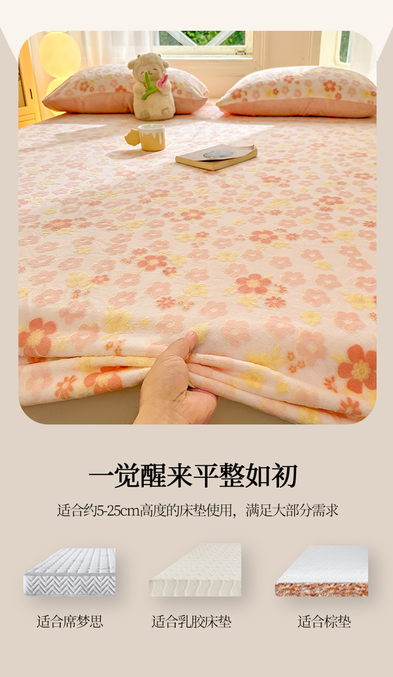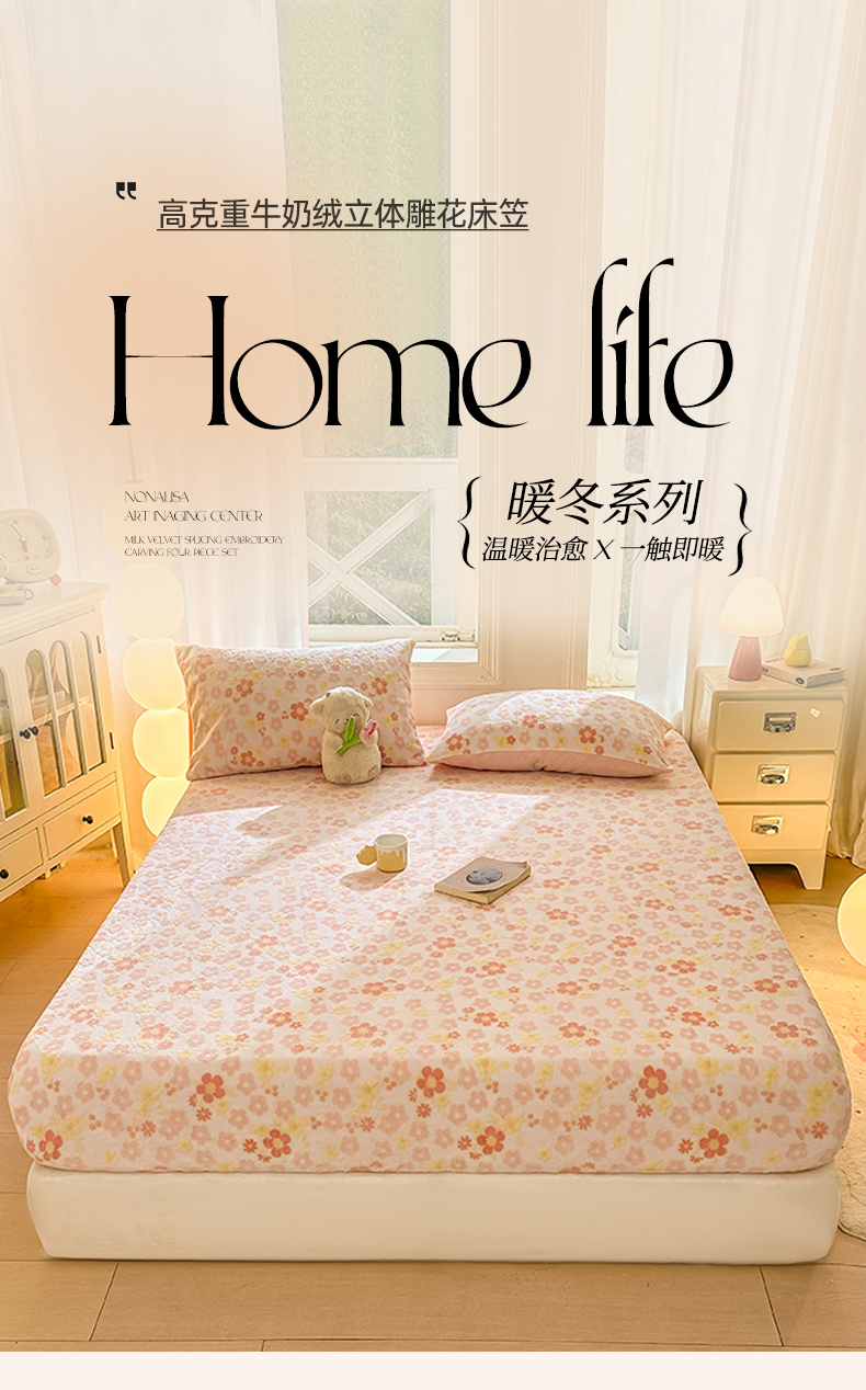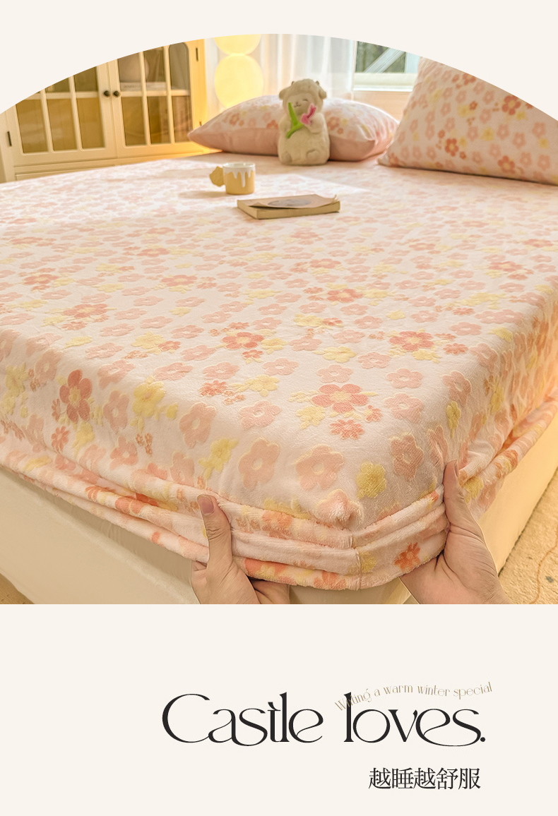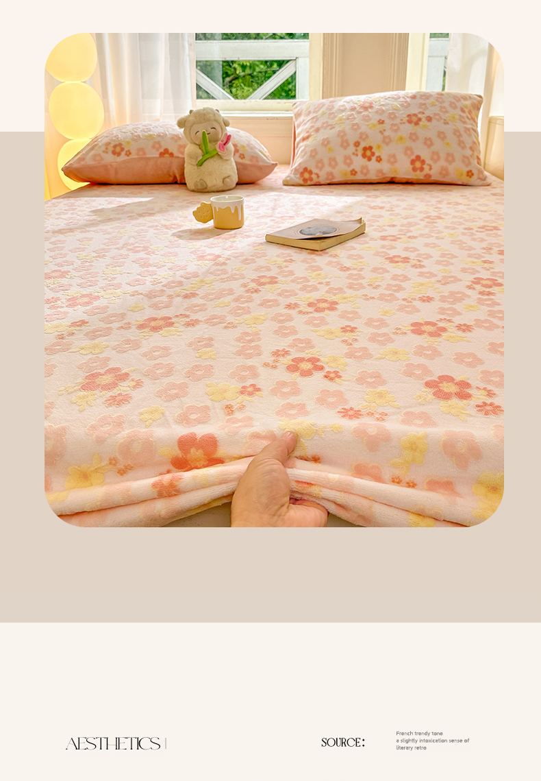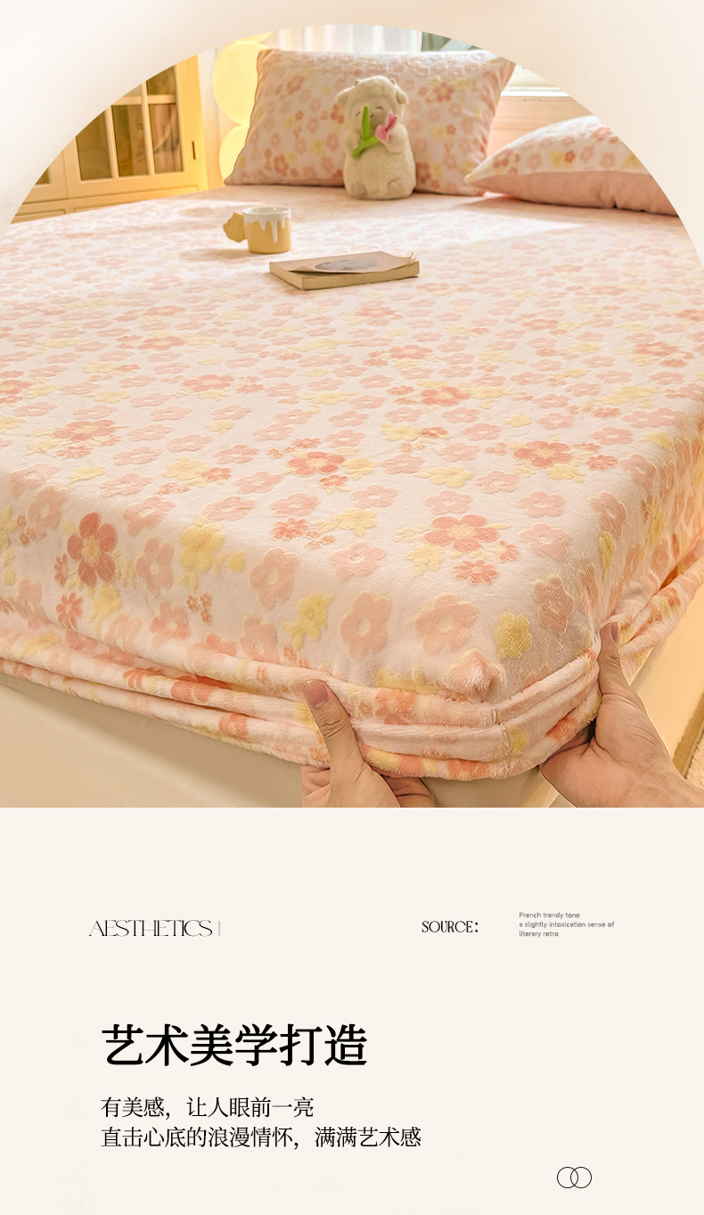 • 91家纺网 家纺一手货源 找家纺 灰鲸 2025新款立体雕花牛奶绒床笠 花海-粉