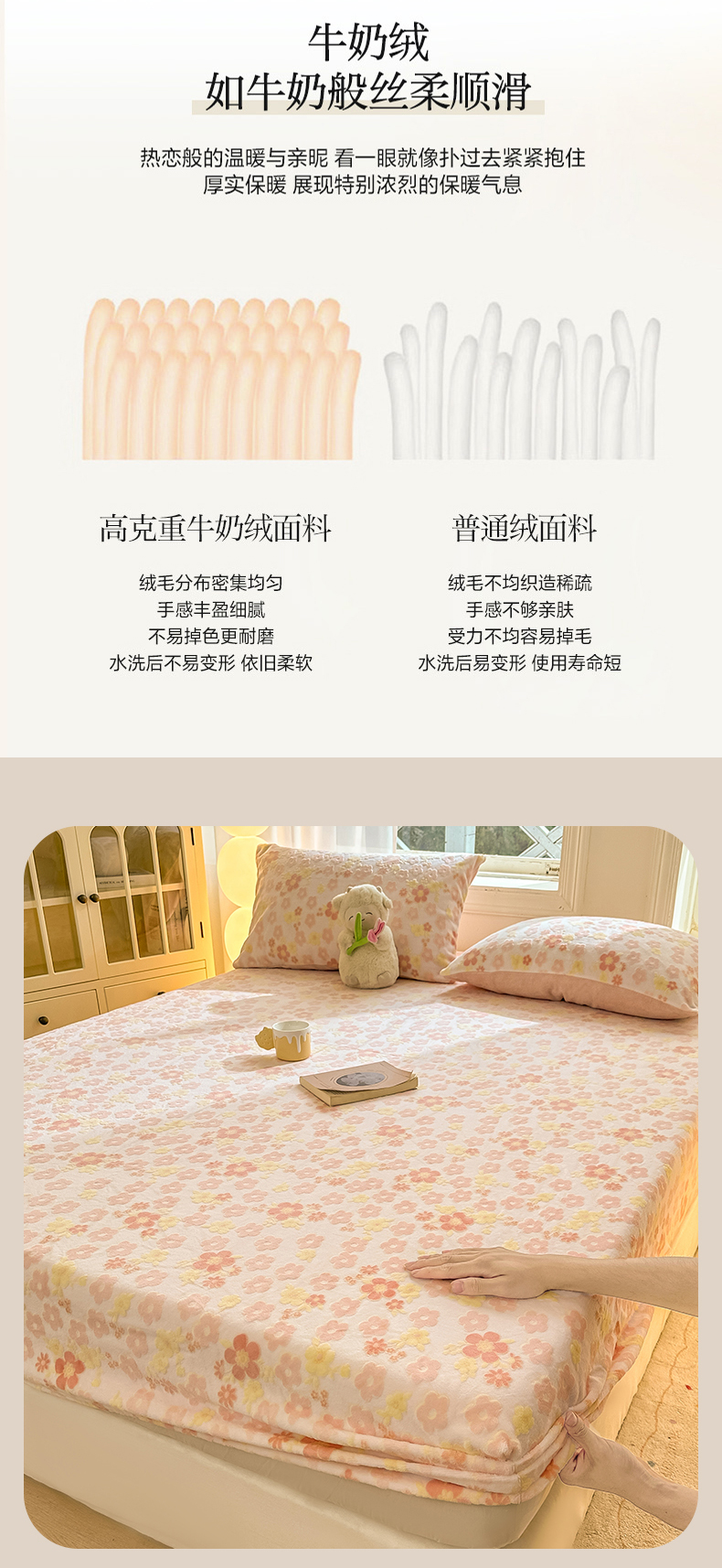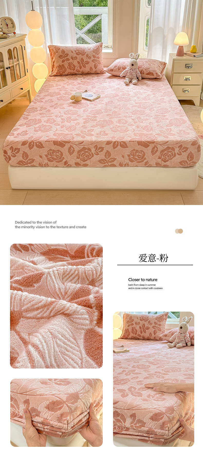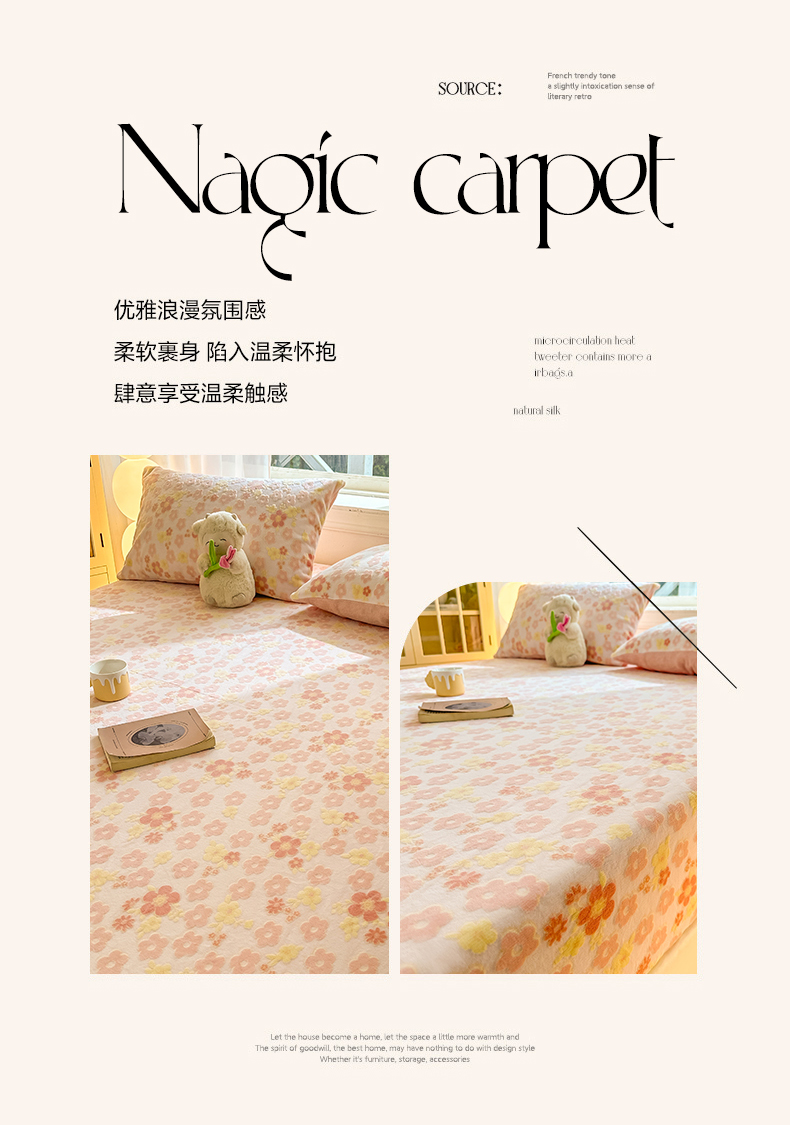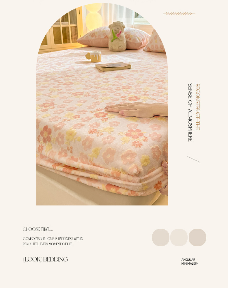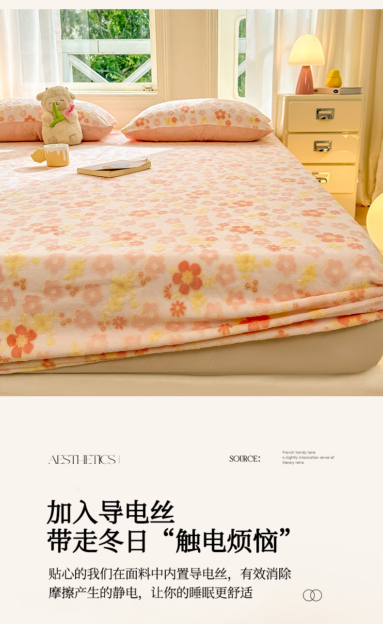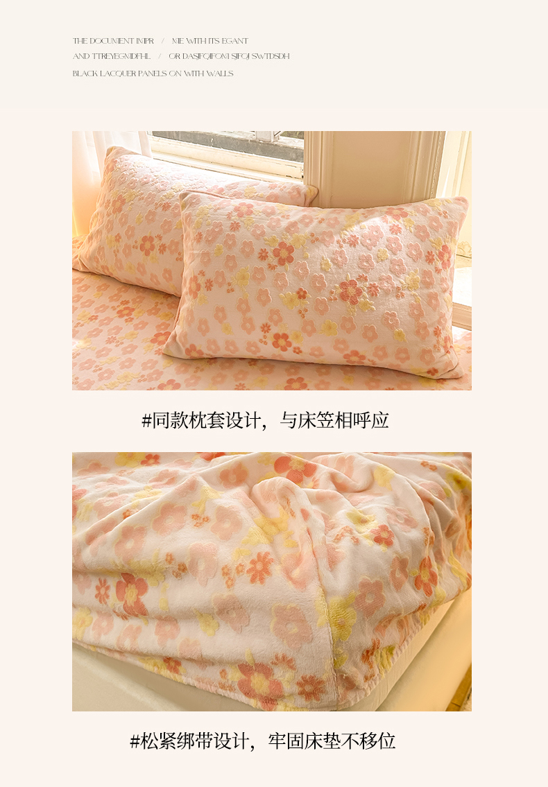 • 91家纺网 家纺一手货源 找家纺 灰鲸 2025新款立体雕花牛奶绒床笠 花海-粉