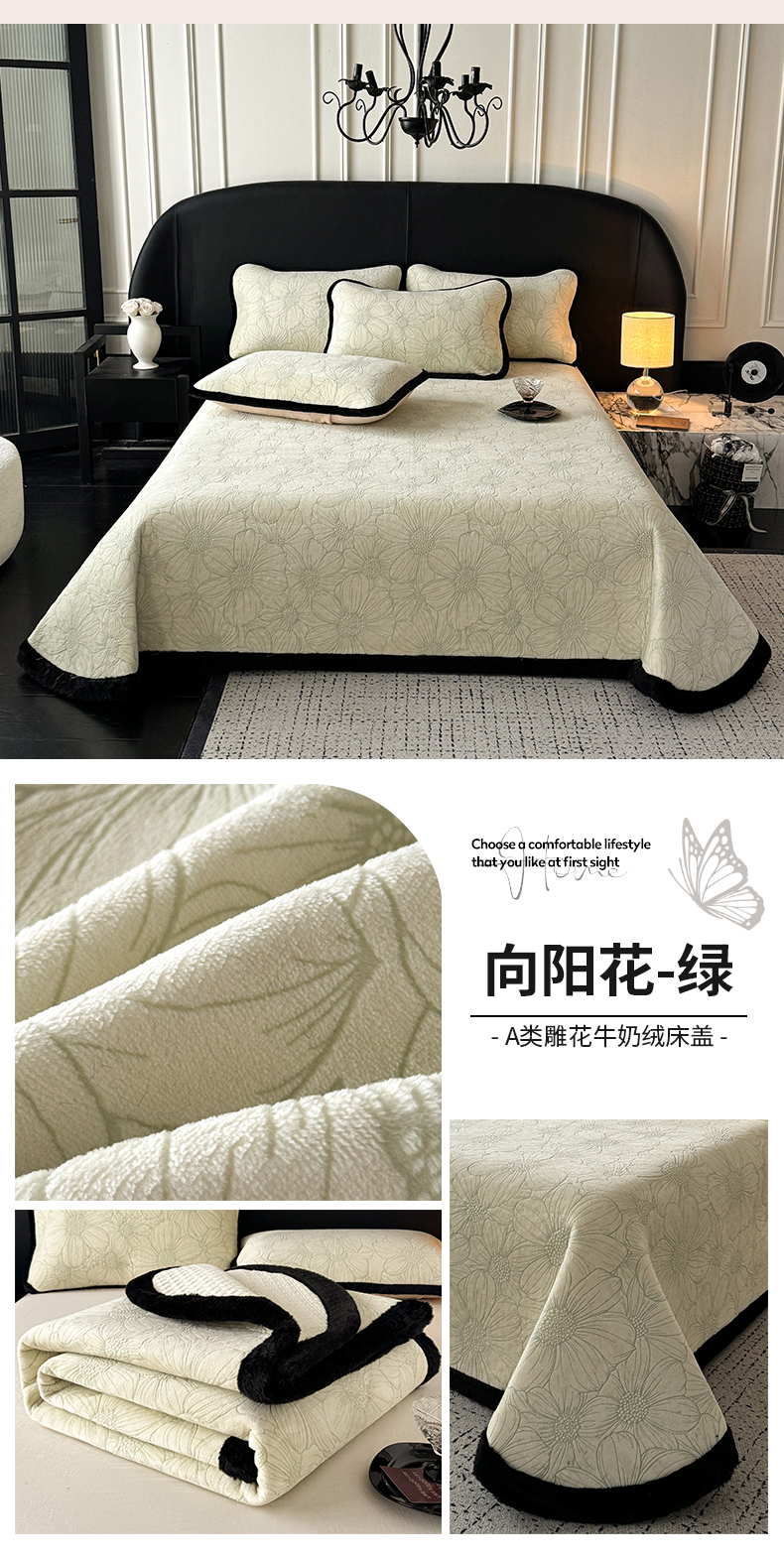 商品名称:卡罗兰 2025新款加绒加厚牛奶绒床盖 向阳花-绿