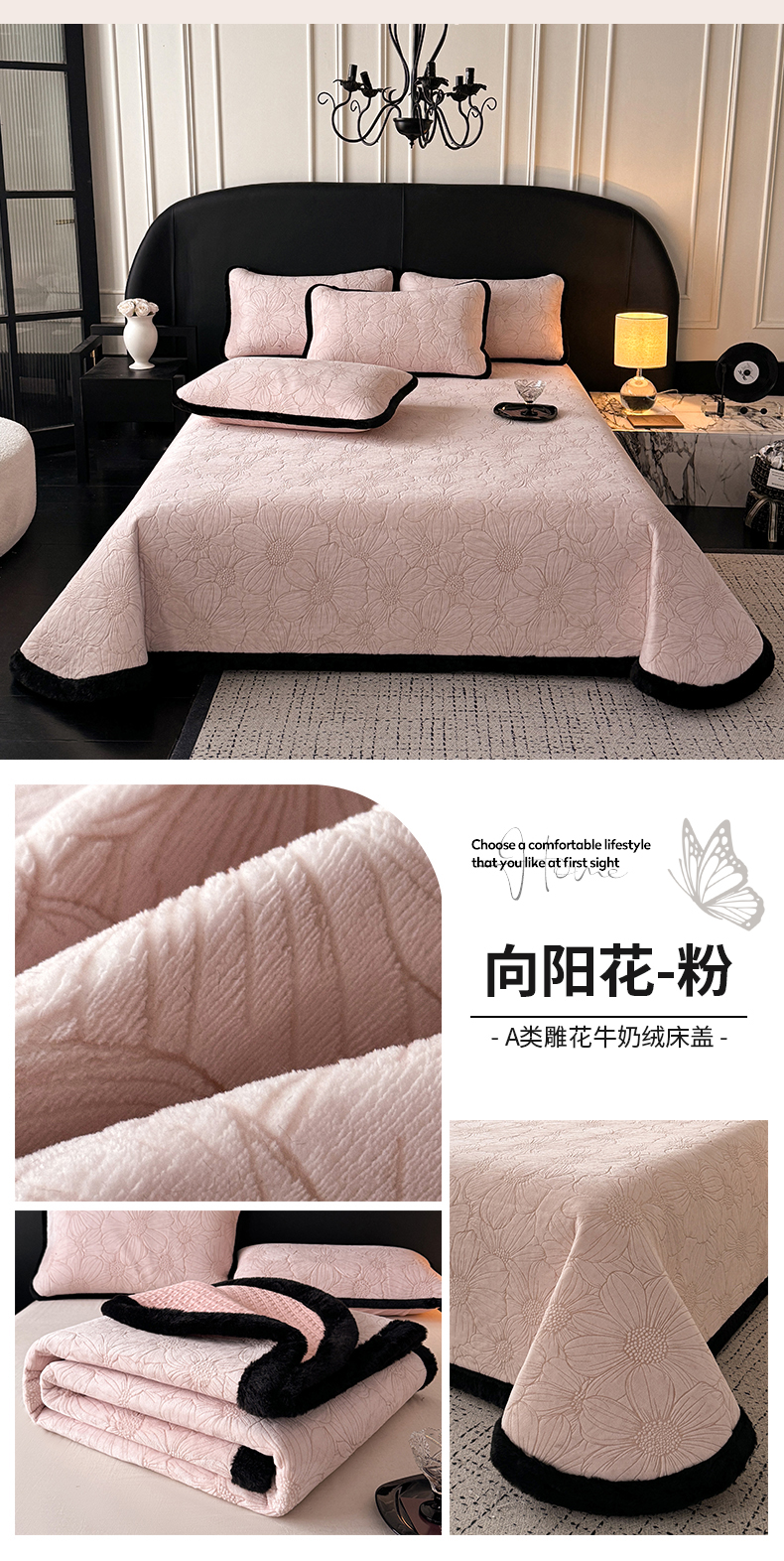 (总)卡罗兰 2025新款加绒加厚牛奶绒床盖,向阳花-粉,向阳花-蓝,向阳花-绿,滕蔓-蓝,滕蔓-咖,滕蔓-粉,滕蔓-灰,灵蝶-粉