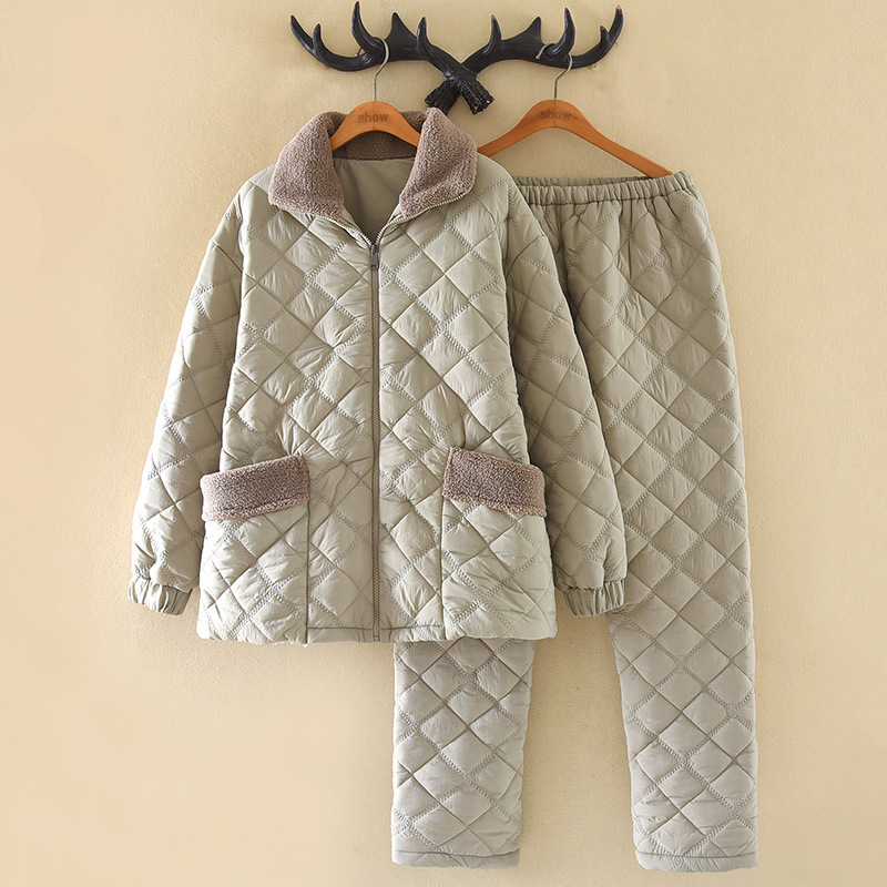 商品名称:洛兰沙家居馆 2025新款【防风防水】新款保暖轻盈单边绒立领拉链夹棉睡衣冬季三层加厚保暖家居服 深灰