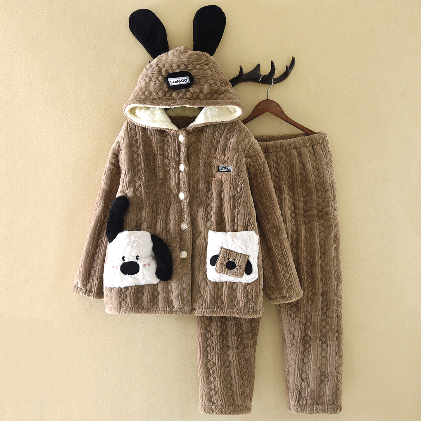 洛兰沙家居馆 2025新款只代发三层加厚连帽可爱耳朵法兰绒珊瑚绒加绒睡衣女秋冬季家居服可外穿 粉色