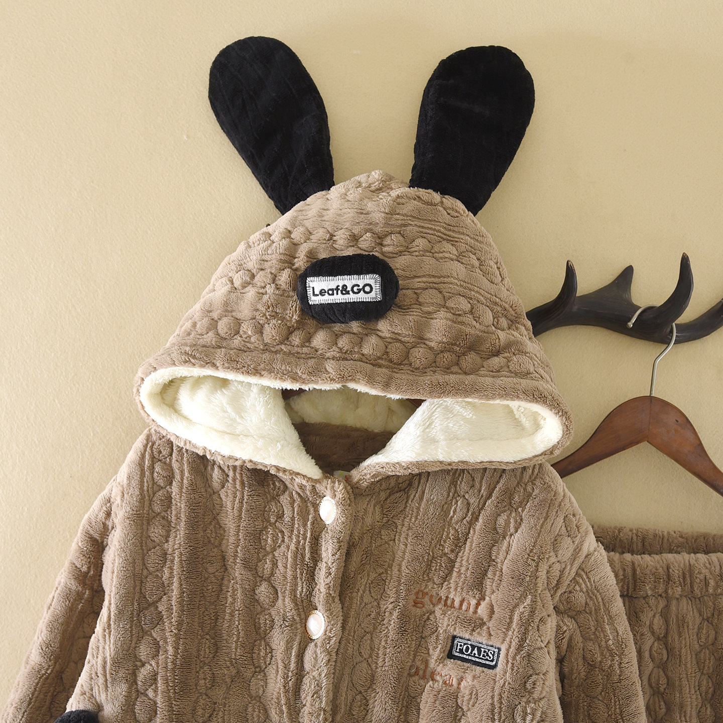 商品名称:洛兰沙家居馆 2025新款只代发三层加厚连帽可爱耳朵法兰绒珊瑚绒加绒睡衣女秋冬季家居服可外穿 粉色