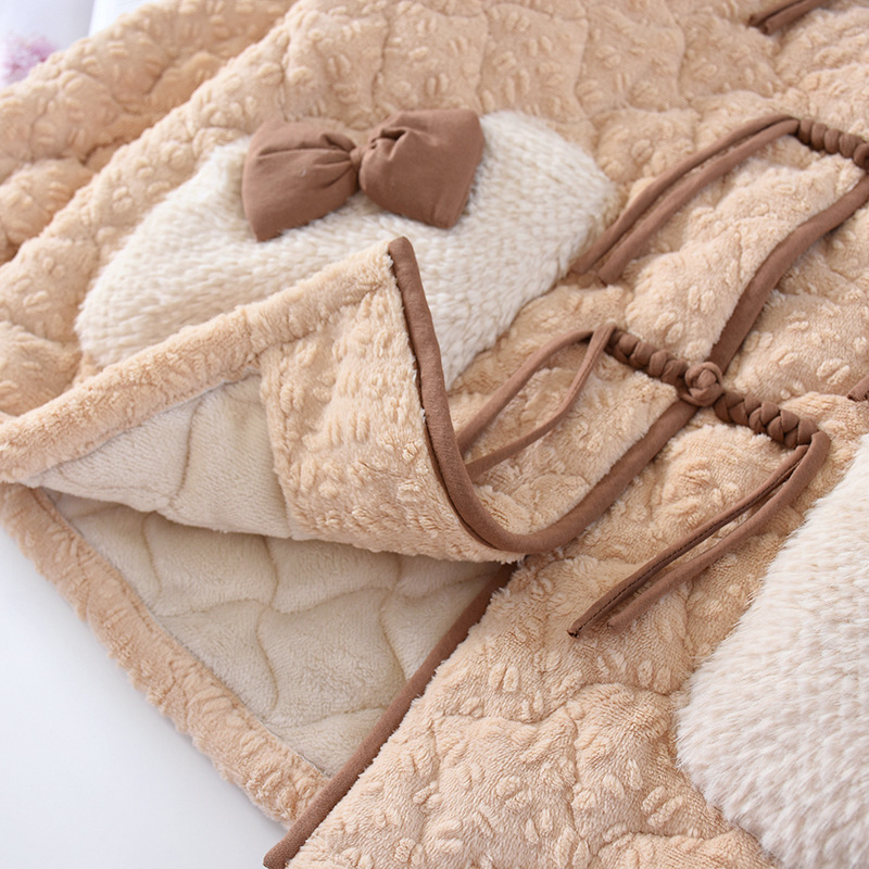 (总)洛兰沙家居馆 2024新款清新睡衣女秋冬三层夹棉珊瑚绒加厚保暖两件套女士可外穿加绒家居服,粉色,灰色,白色,玉色