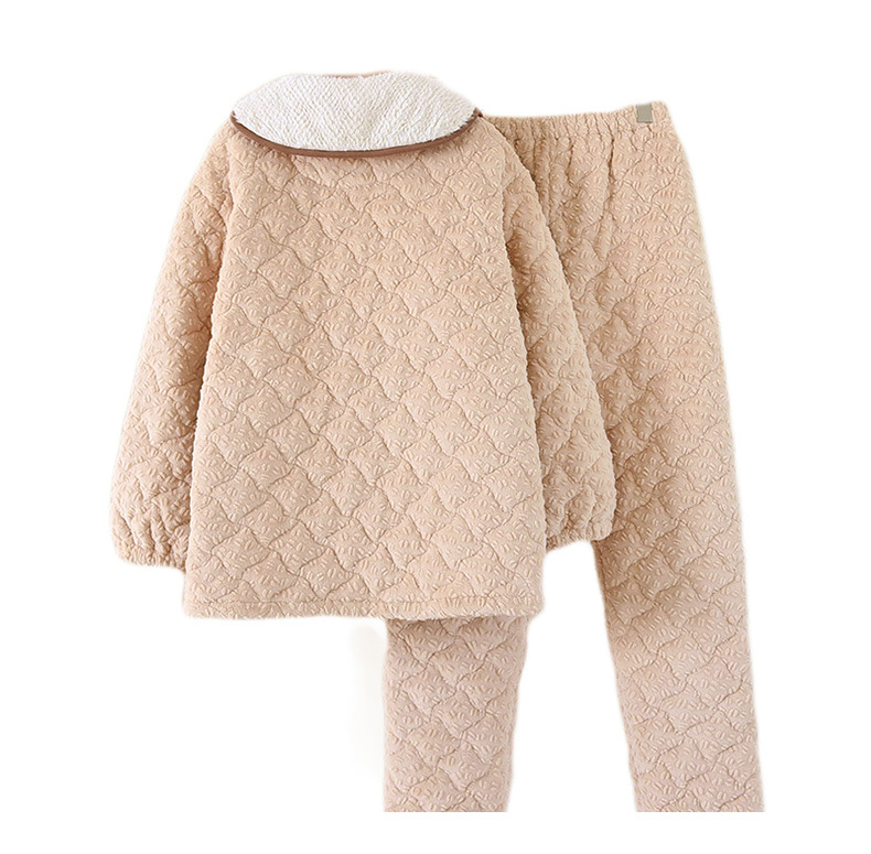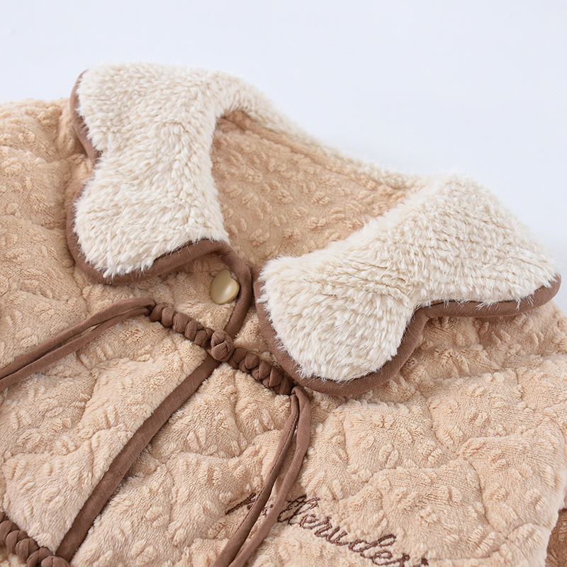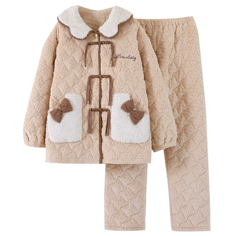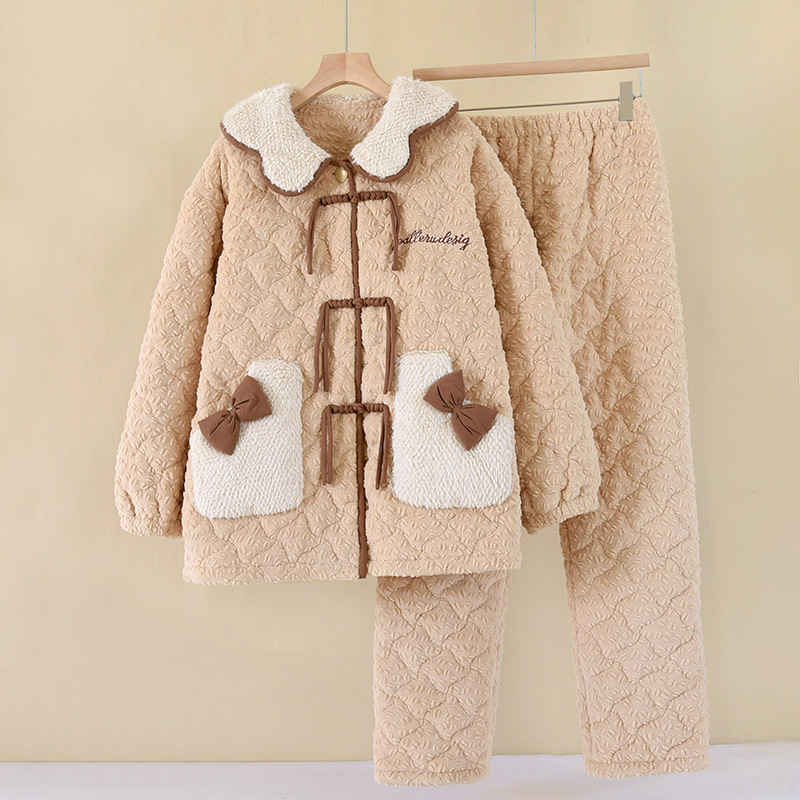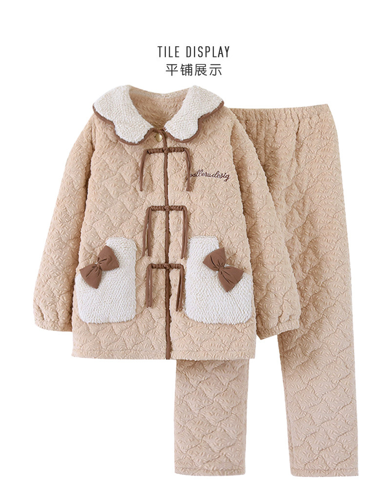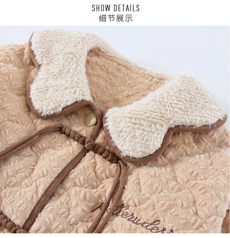 商品名称:(总)洛兰沙家居馆 2025新款只代发新款娃娃领加厚睡衣女法兰绒夹棉加绒套装秋冬季珊瑚绒家居服