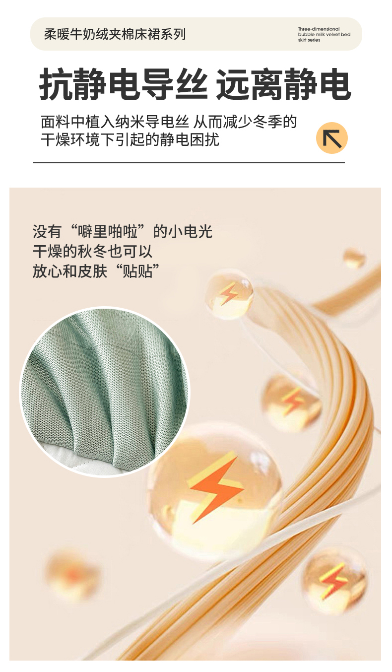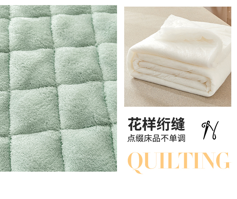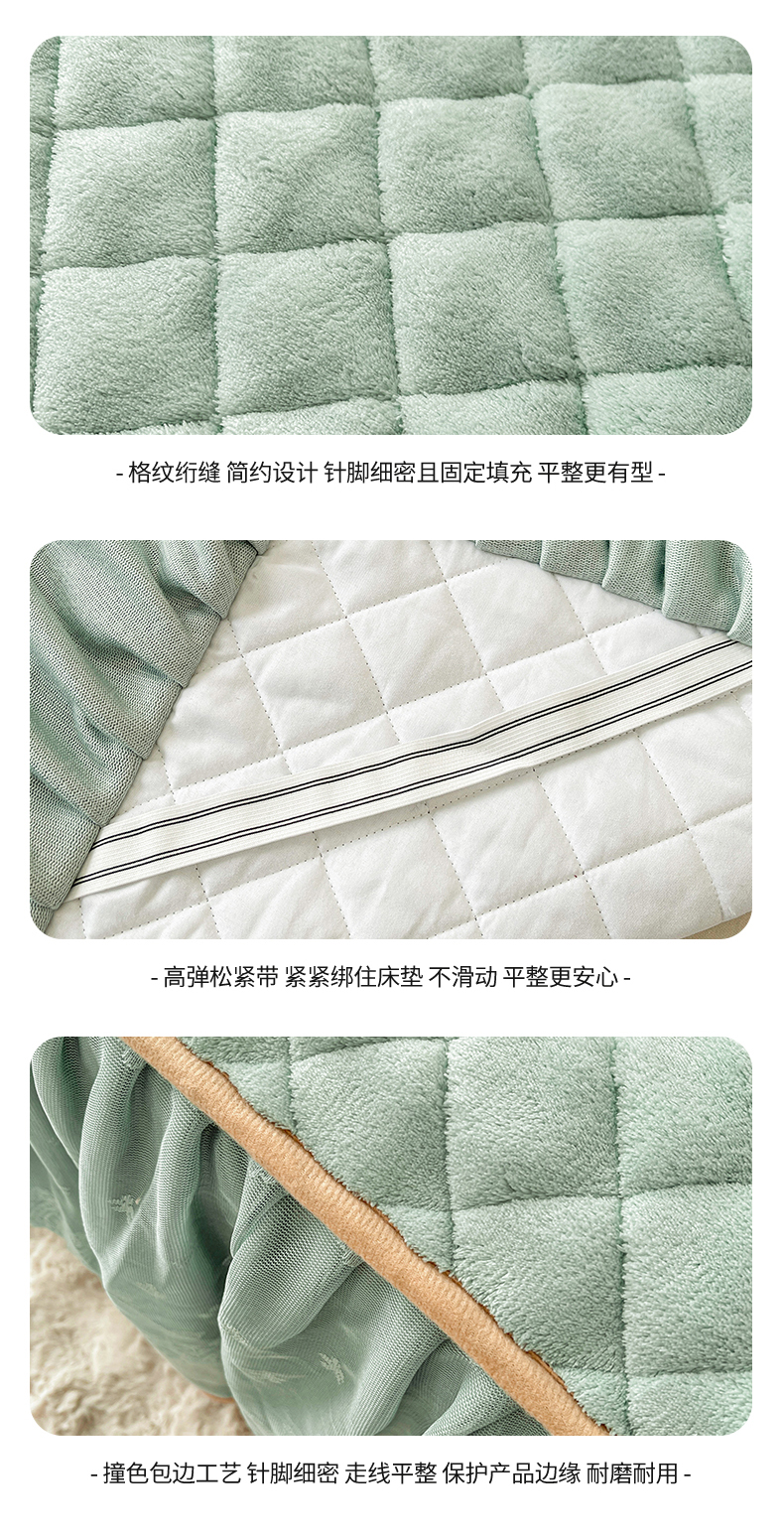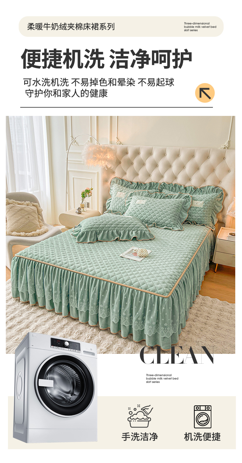 商品名称:情恒家纺 2025新款立体泡泡牛奶绒夹棉床裙三件套系列-浅语光年 浅语光年-水绿