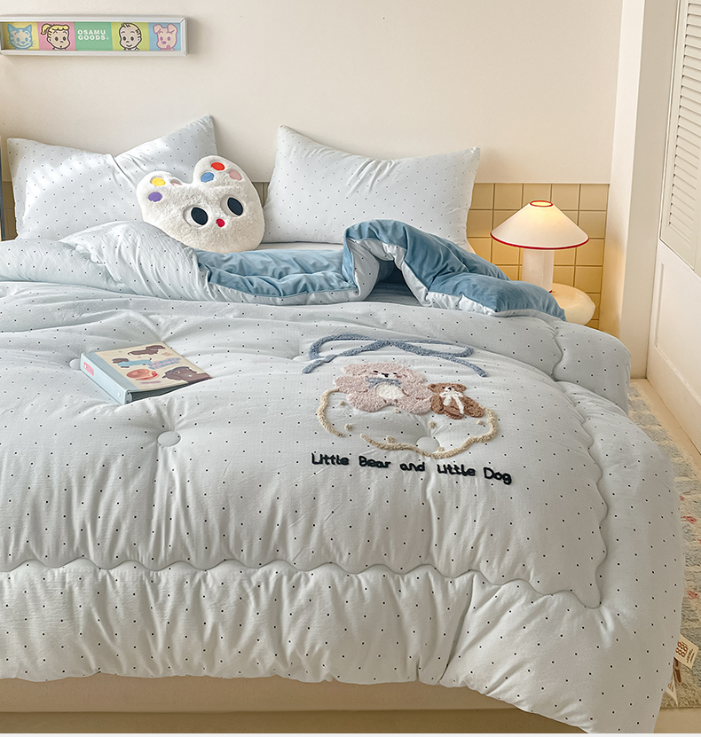 (总)老帅的工厂店 2026新款A类云感双层纱7A抗菌床盖夏被四件套系列,芋泥小兔,草莓格,春野粉调,点点碟序,碟织,粉波Kitty梦,海盐波波,海盐花田,花开漫漫,花蔓,花漾,蓝格萌狗,暖花,浅野小猫,倾结,甜心兔,兔眠,兔兔密语,雾棕花影,小狗笔记,织梦