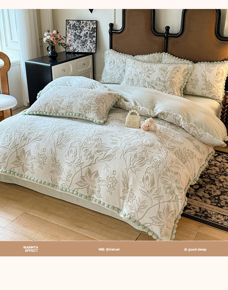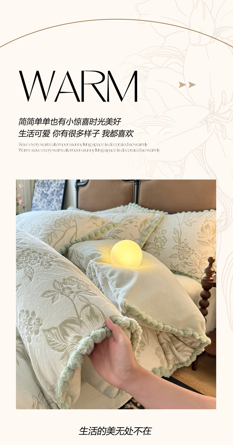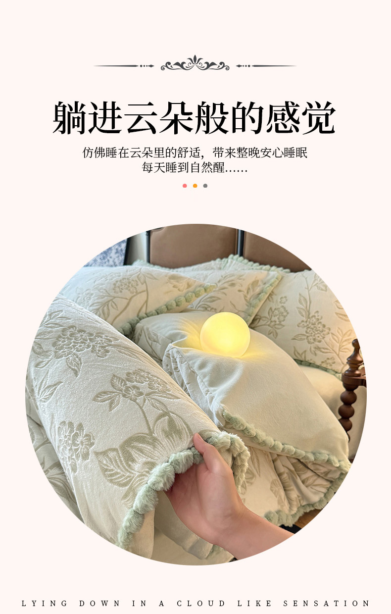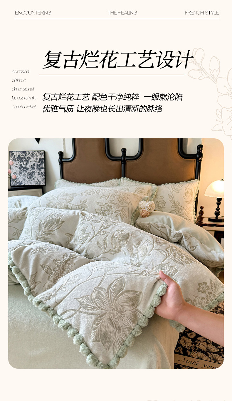 商品名称:菲儿家纺 2025新款加厚保暖烂花法式牛奶绒四件套 香榭落叶