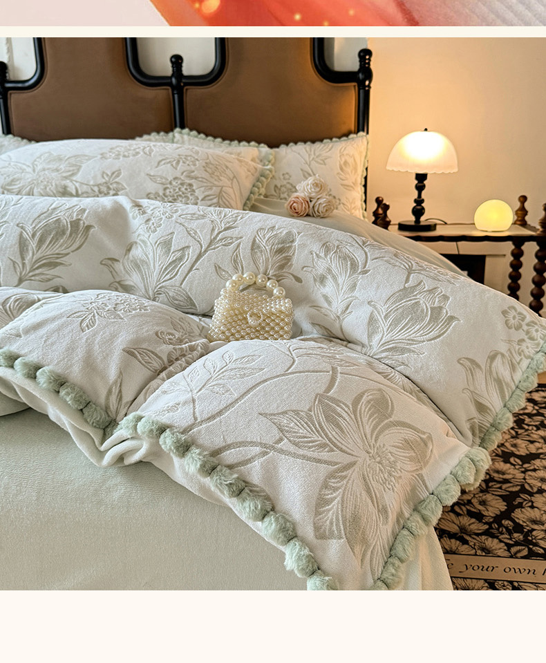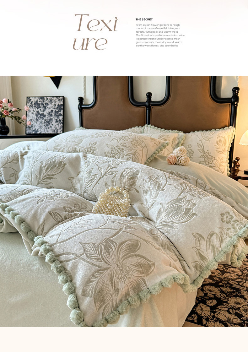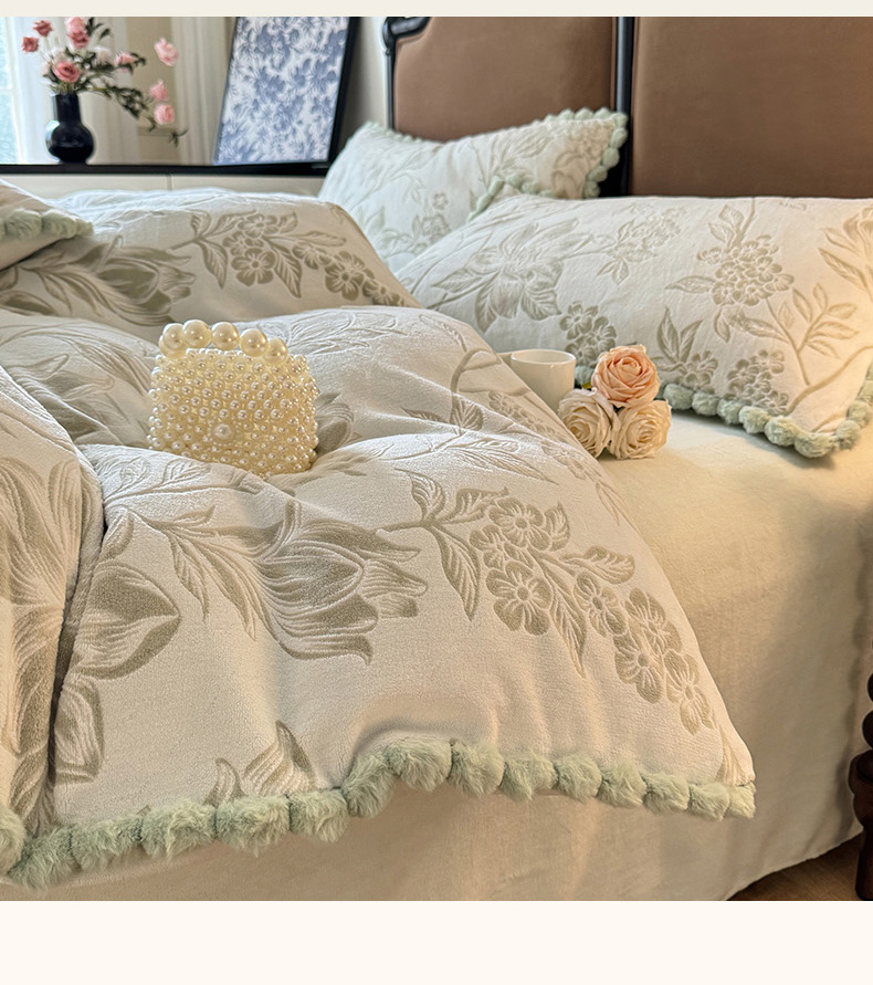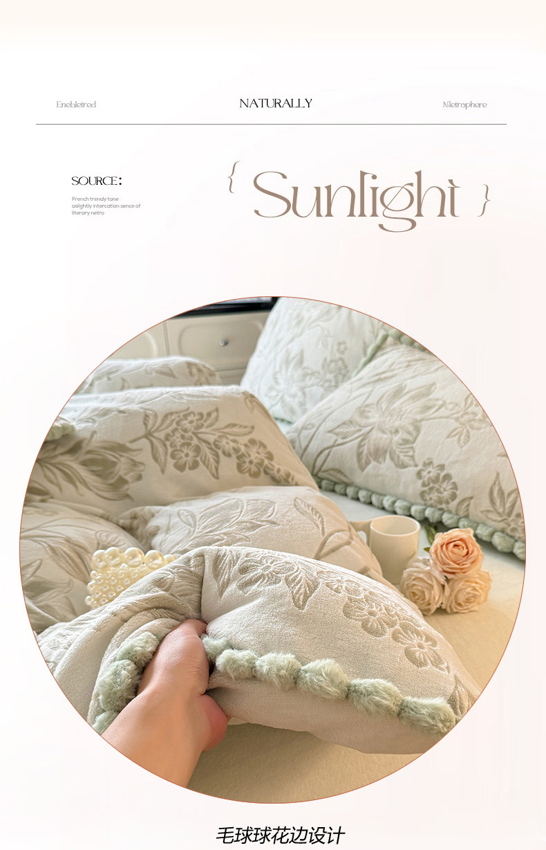 商品名称:菲儿家纺 2025新款加厚保暖烂花法式牛奶绒四件套 香榭落叶