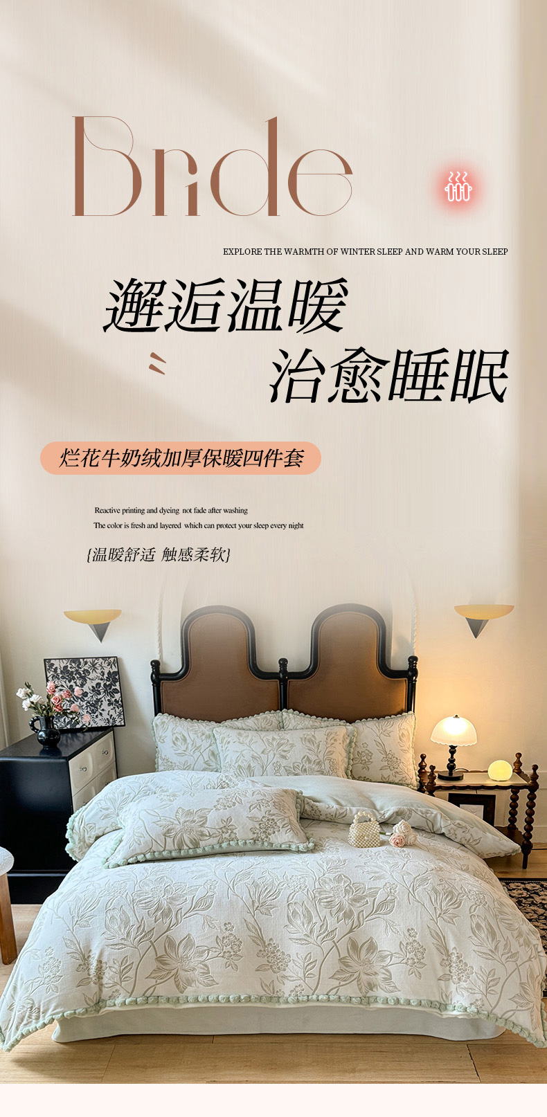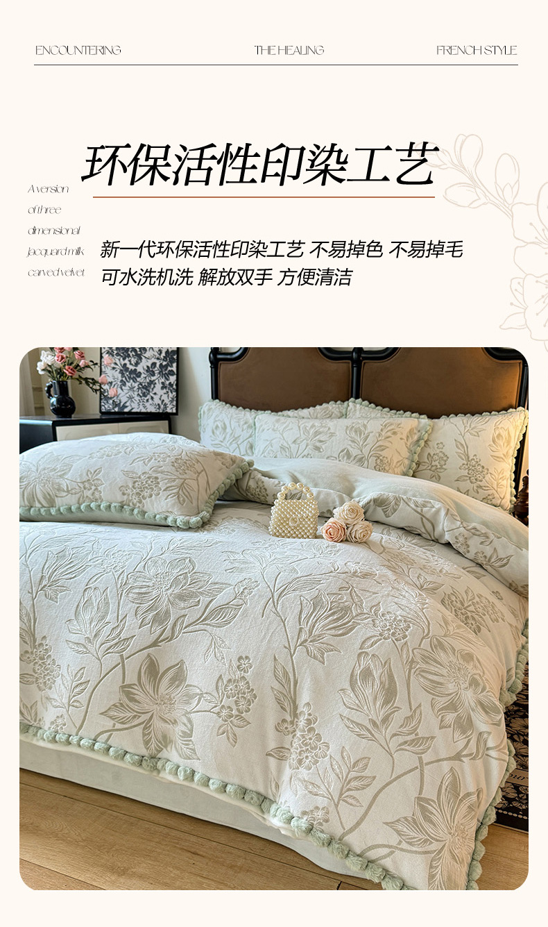 (总)菲儿家纺 2025新款加厚保暖烂花法式牛奶绒四件套,丛林迷影,枫丹白露,香榭落叶,叶语悠然,夜半花香,壹枝玫瑰