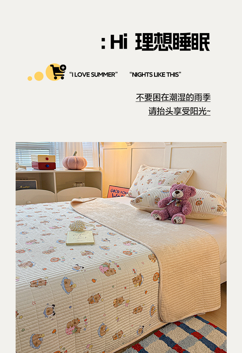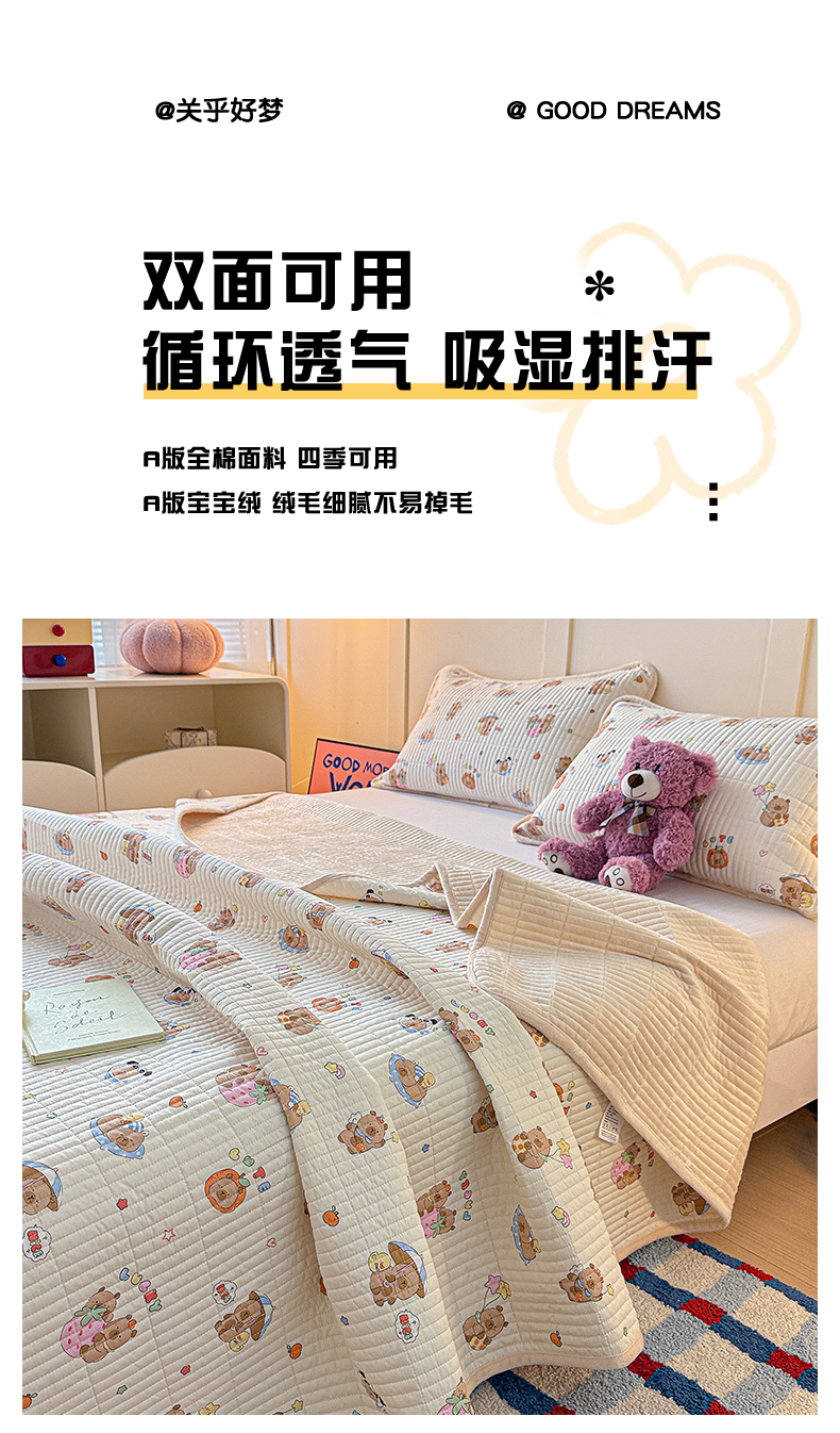 商品名称:橙子家居 2025新款棉加绒床盖床盖单件床盖单品床盖三件套夹层水洗棉花跑量款现货 熊猫卡皮