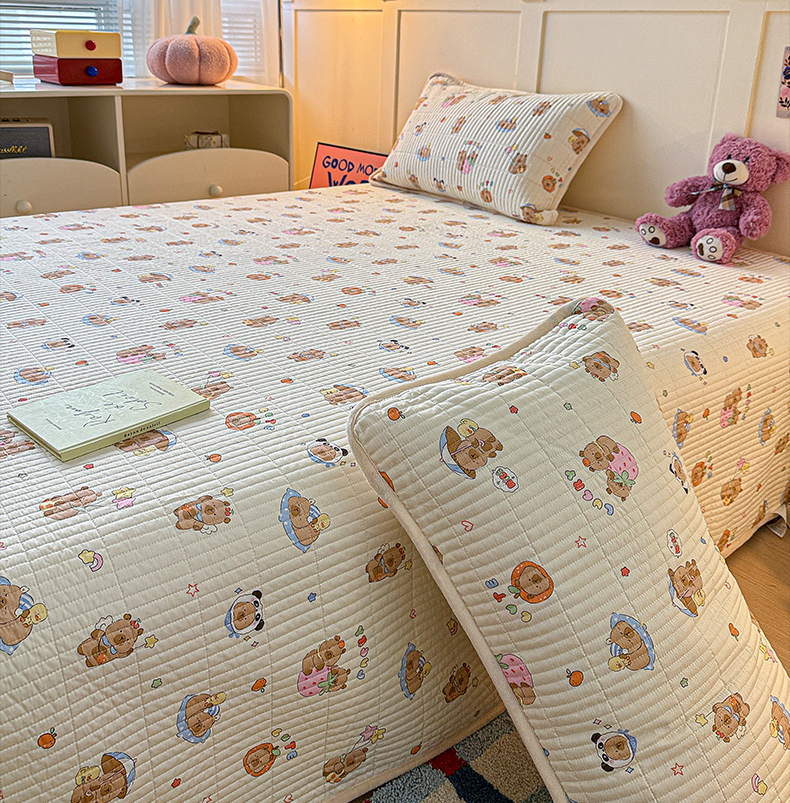 橙子家居 2025新款棉加绒床盖床盖单件床盖单品床盖三件套夹层水洗棉花跑量款现货 熊猫卡皮