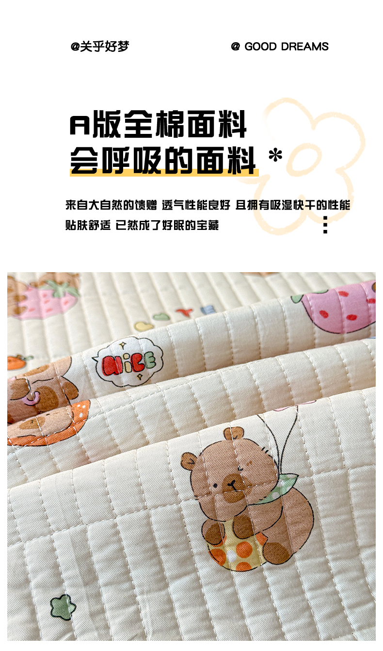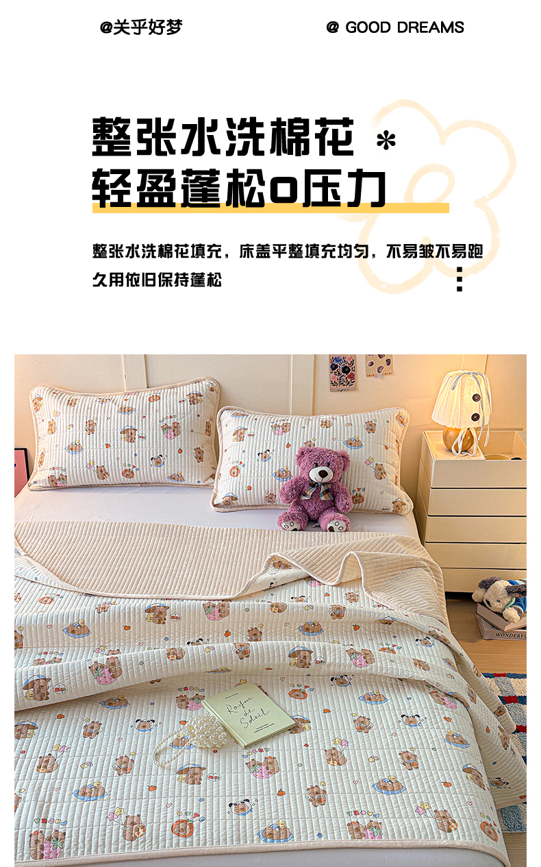 (总)橙子家居 2025新款双面全棉纯棉砂洗夹棉床盖三件套,粉木马,腊肠狗,梦露花园,苹果趣事,甜心南瓜,小熊贝蒂,樱桃派,组合图仅供展示,格子小熊,赫本,莫娇-黄,沁花-绿,薇恋时光,雾里花-粉,雅清