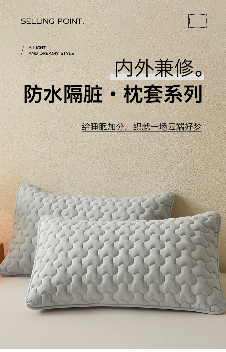 商品名称:居眠 2025新款简格-棉花防水枕套-简格 简格-灰