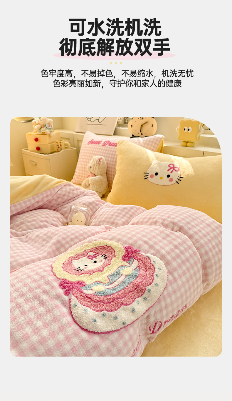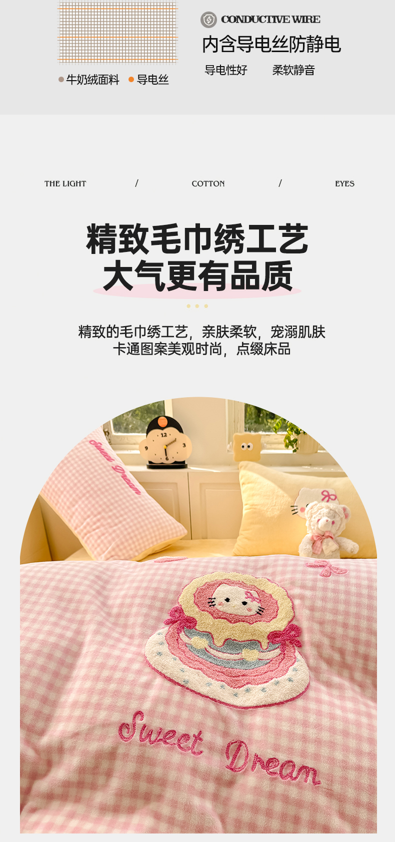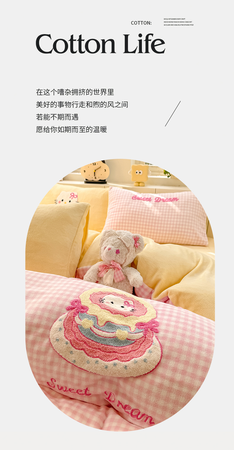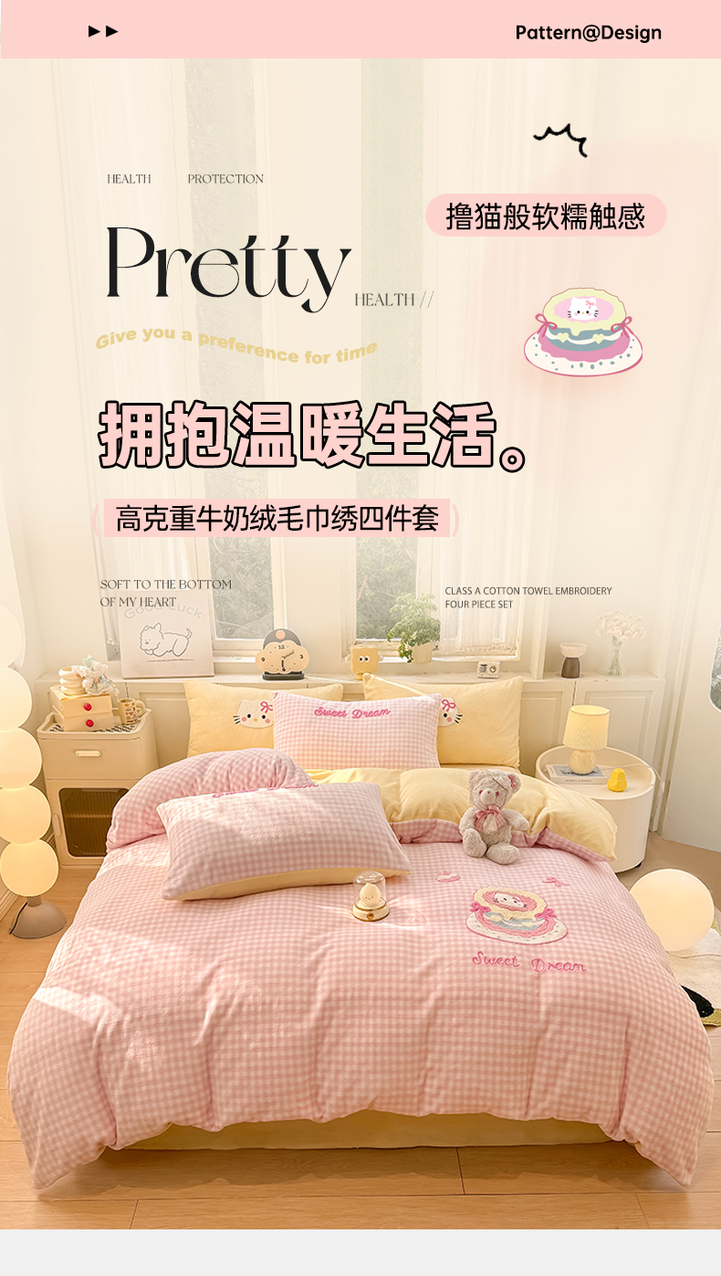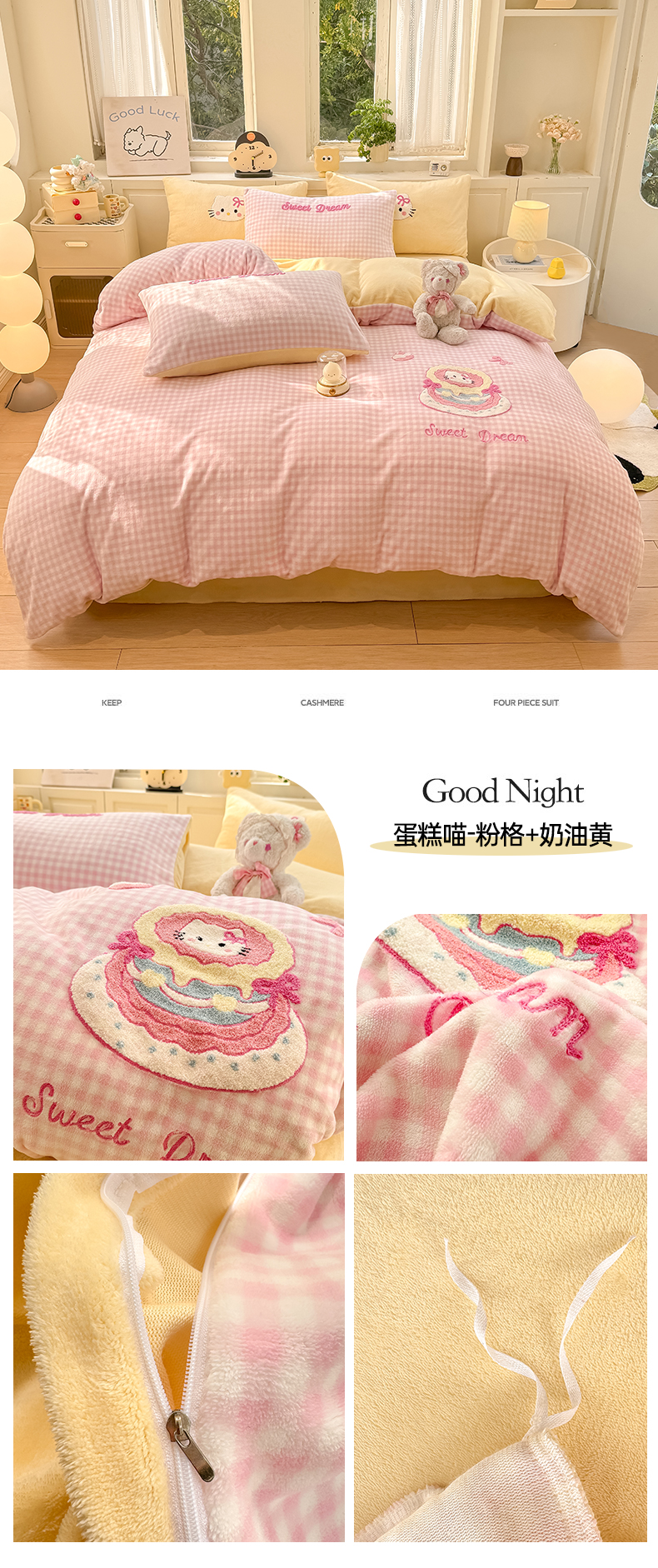 当前位置: 91家纺网 > 商品网购 > 床品套件 > 四件套 > 牛奶绒四件套 > 灰鲸 2025新款牛奶绒毛巾绣苹果狗、蛋糕喵系列四件套 蛋糕喵-粉格+奶油黄