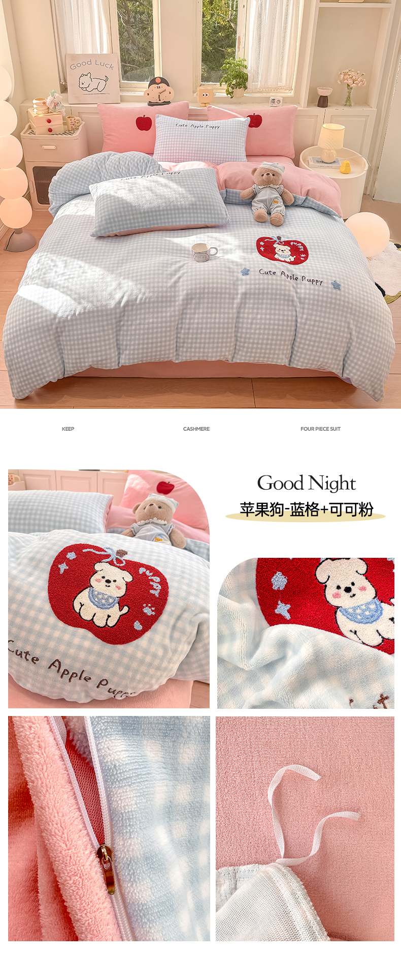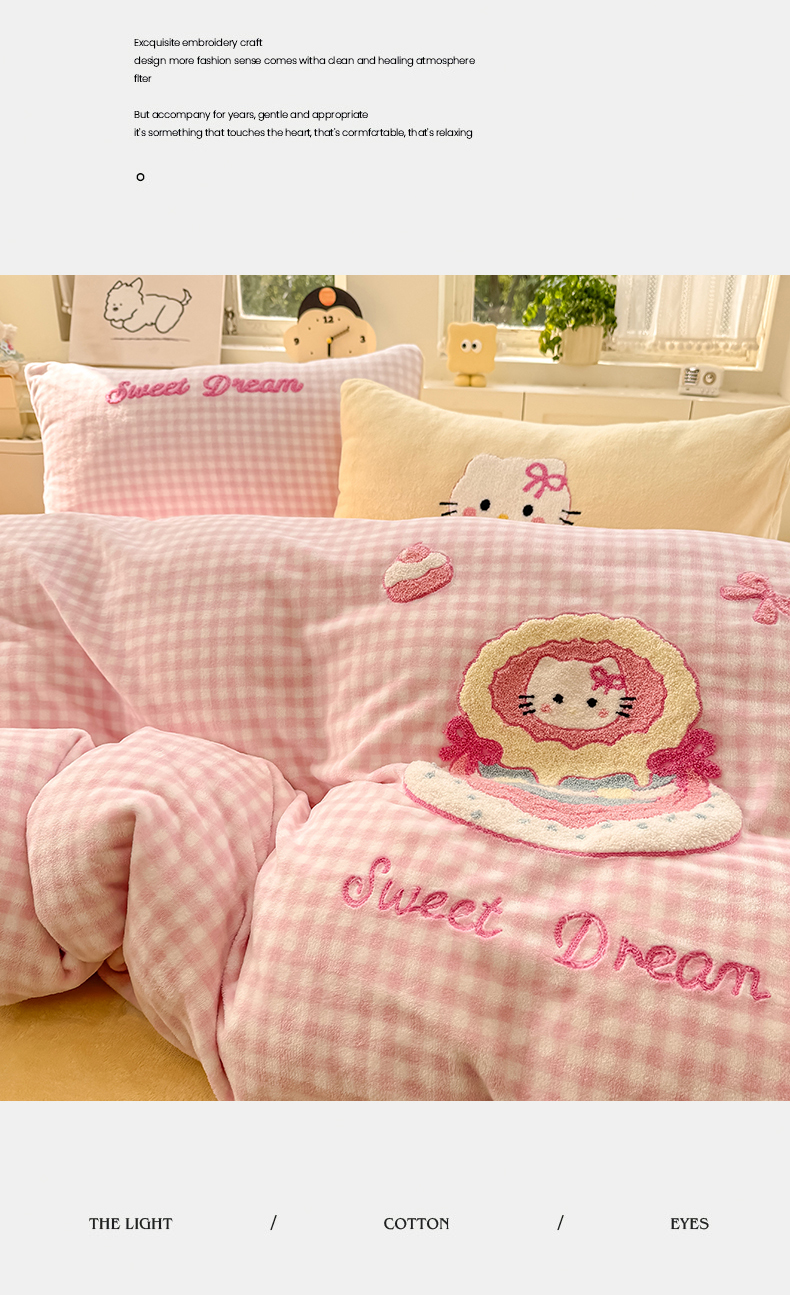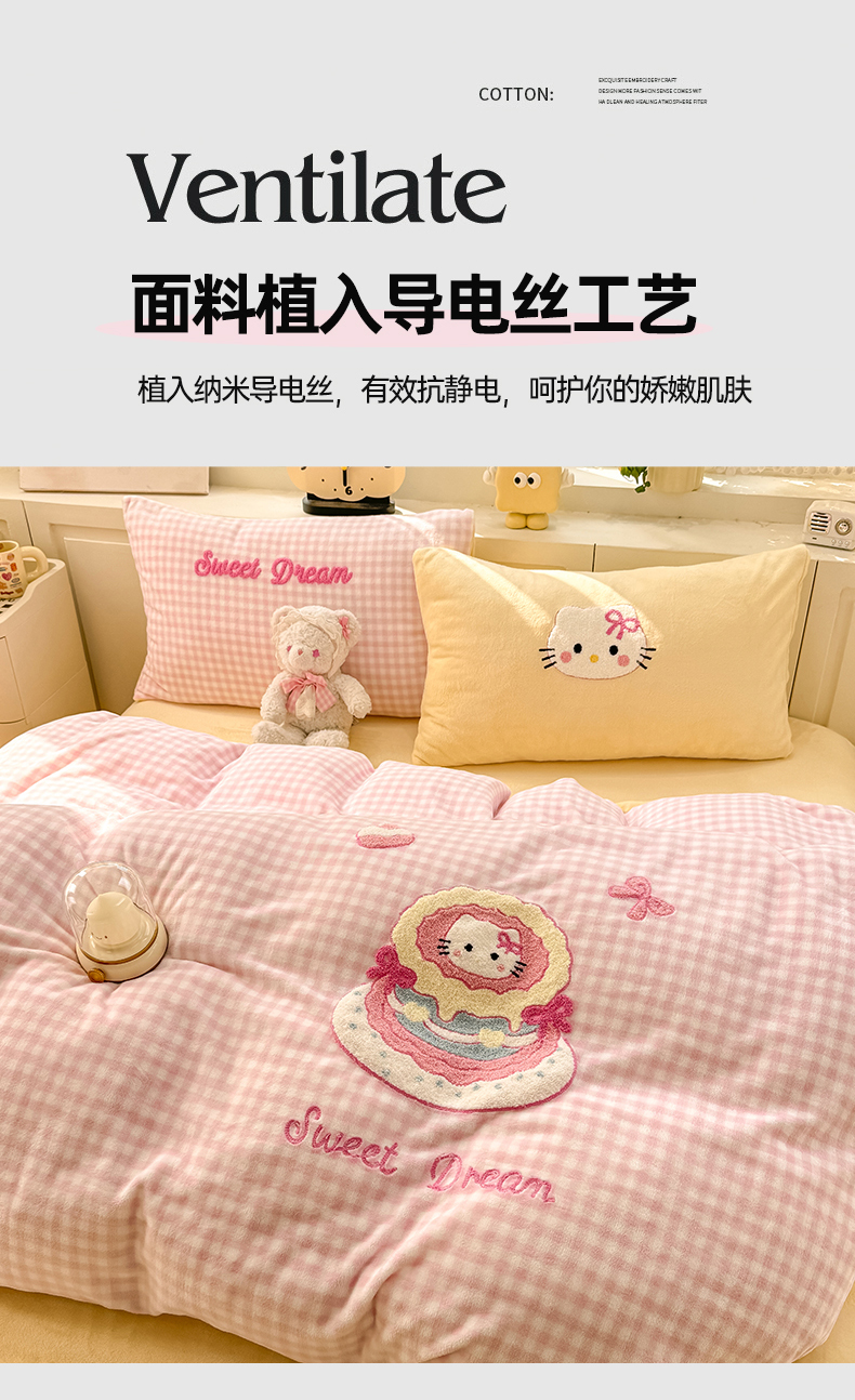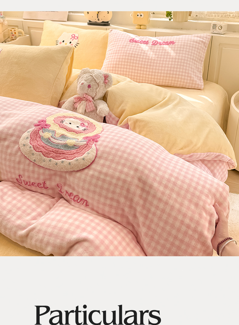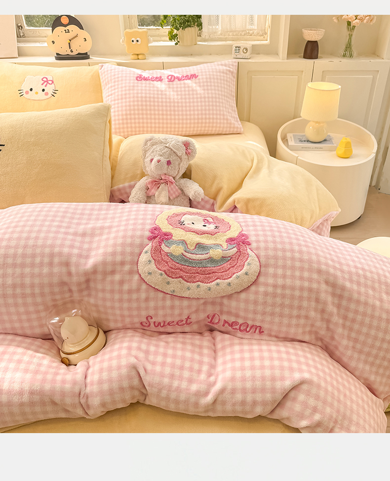 当前位置: 91家纺网 > 商品网购 > 床品套件 > 四件套 > 牛奶绒四件套 > 灰鲸 2025新款牛奶绒毛巾绣苹果狗、蛋糕喵系列四件套 蛋糕喵-粉格+奶油黄