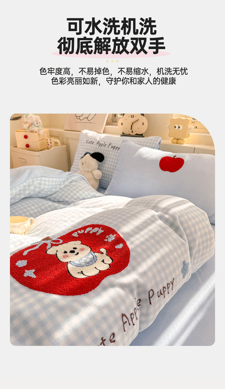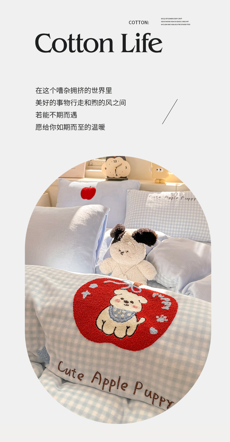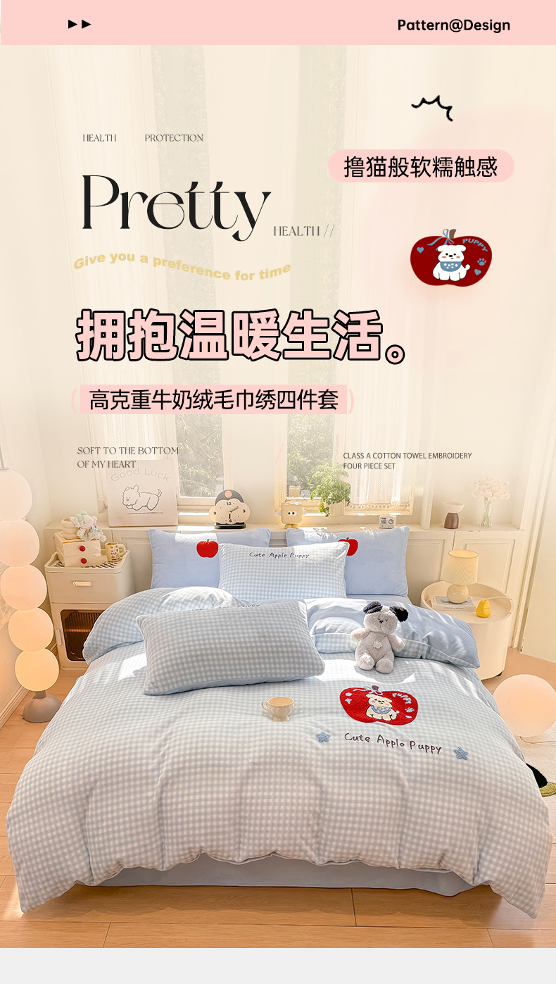 当前位置: 91家纺网 > 商品网购 > 床品套件 > 四件套 > 牛奶绒四件套 > 灰鲸 2025新款牛奶绒毛巾绣苹果狗、蛋糕喵系列四件套 苹果狗-紫格+奶油黄