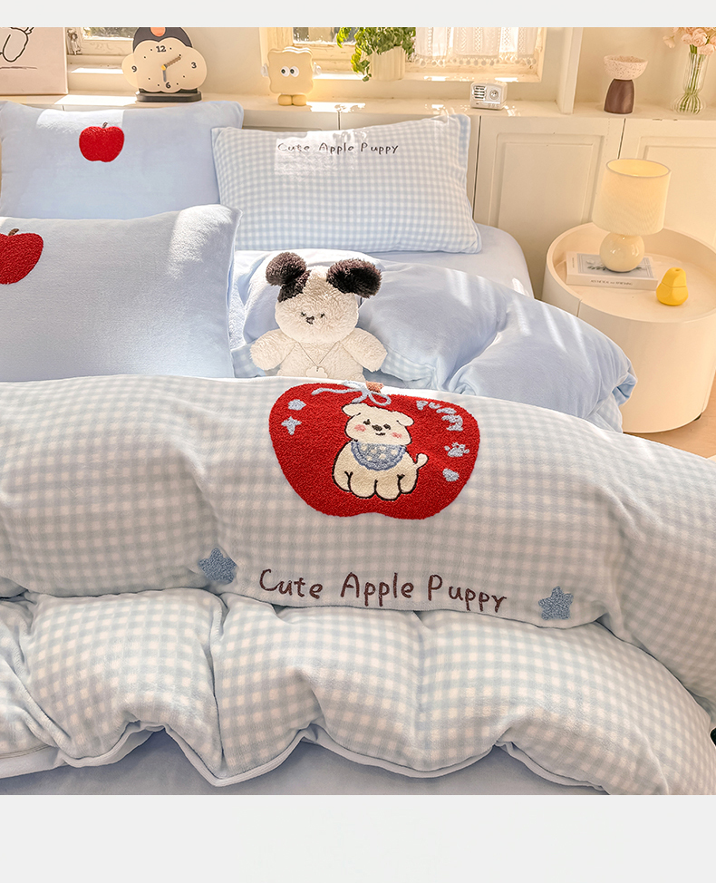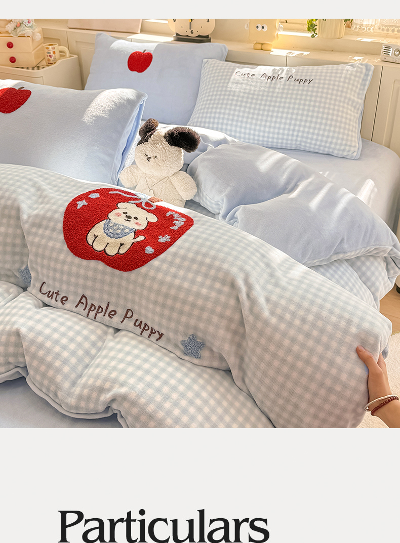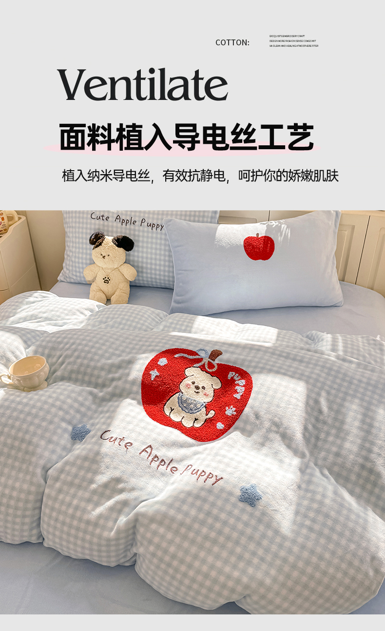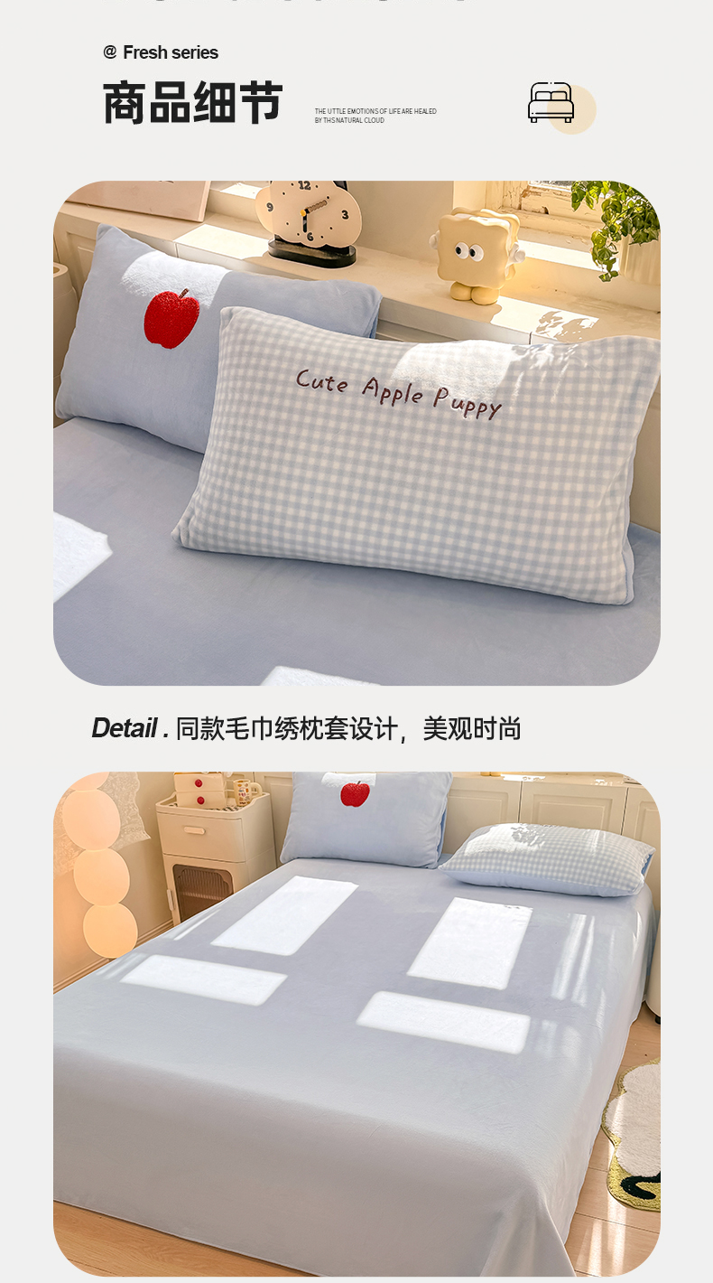 当前位置: 91家纺网 > 商品网购 > 床品套件 > 四件套 > 牛奶绒四件套 > 灰鲸 2025新款牛奶绒毛巾绣苹果狗、蛋糕喵系列四件套 苹果狗-紫格+奶油黄