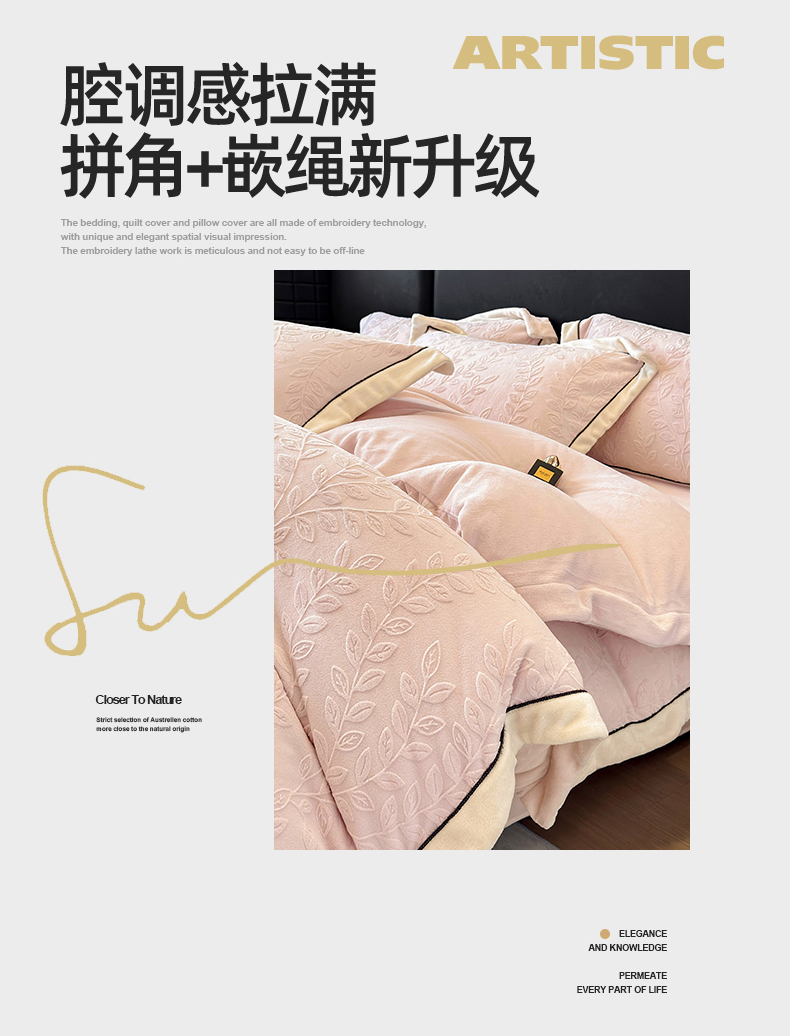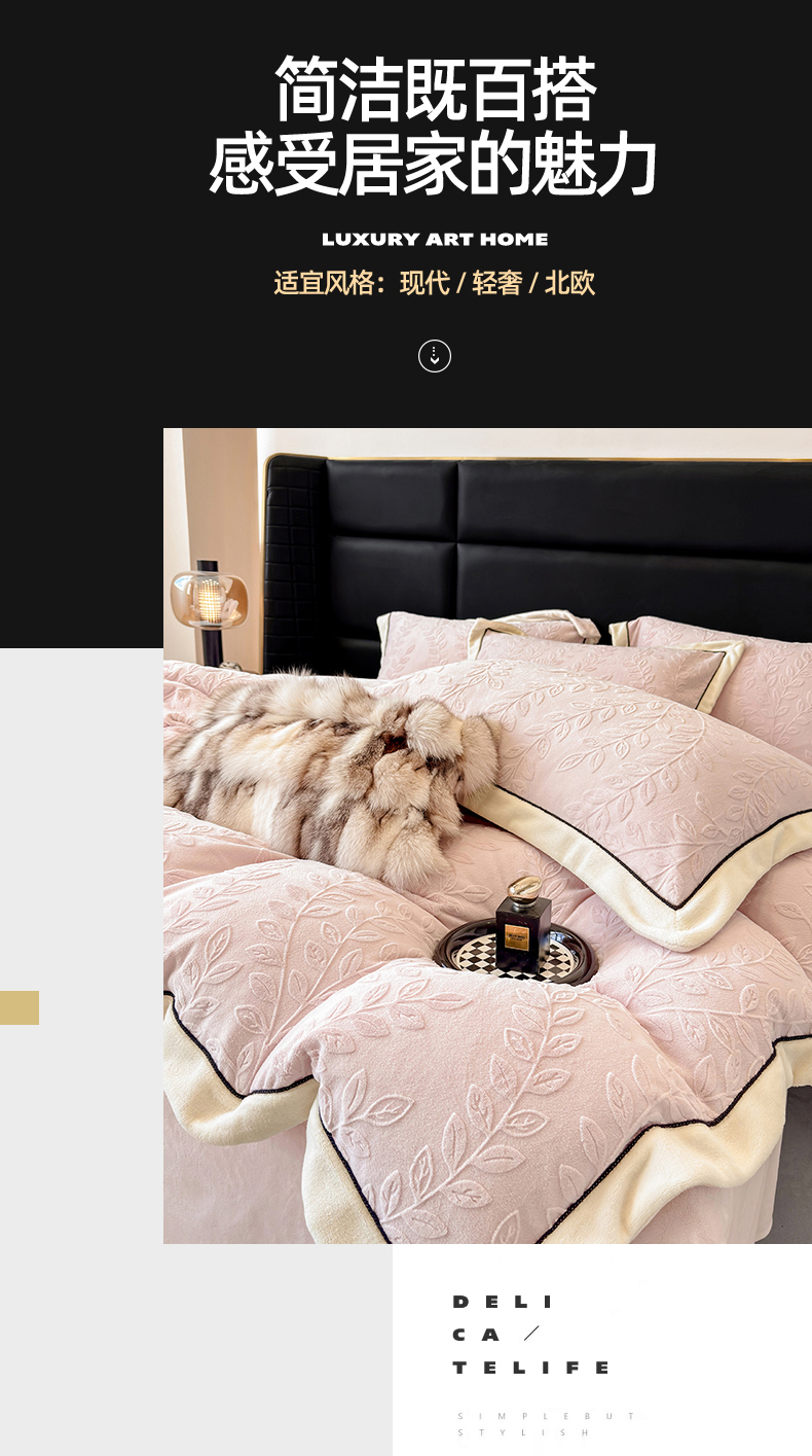 (总)大米家居 2025新款雕花绒轻奢拼角系列四件套-柏林晚风系列,柏林晚风-茶棕,柏林晚风-浅米,柏林晚风-凇灰