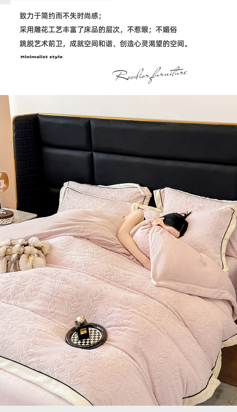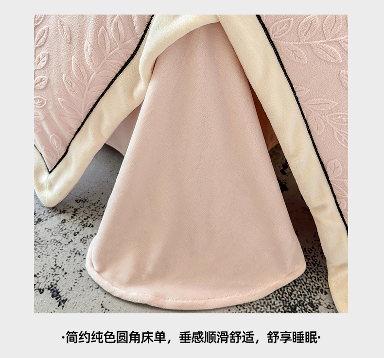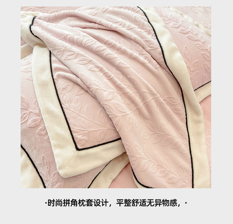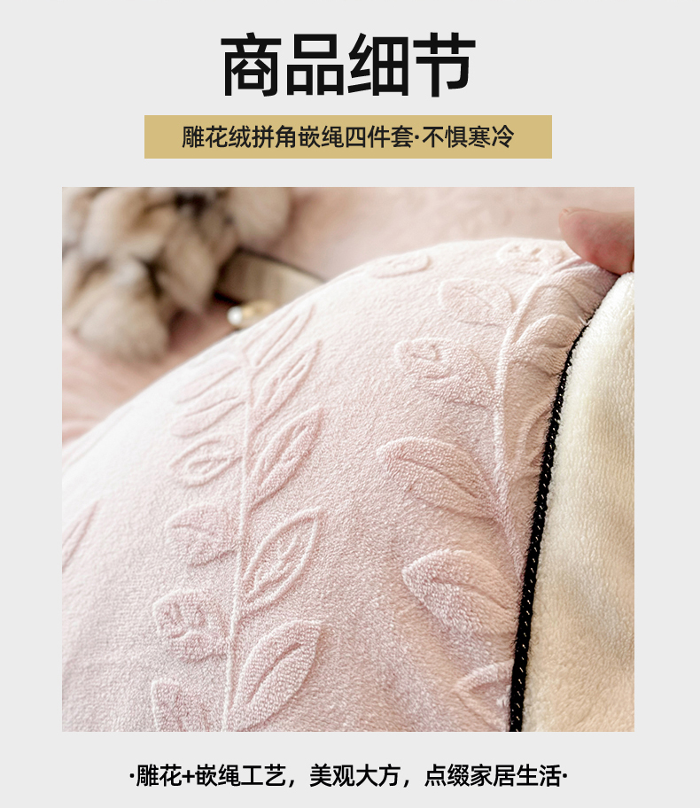 商品名称:大米家居 2025新款雕花绒拼角嵌绳系列四件套 花枝-桃粉