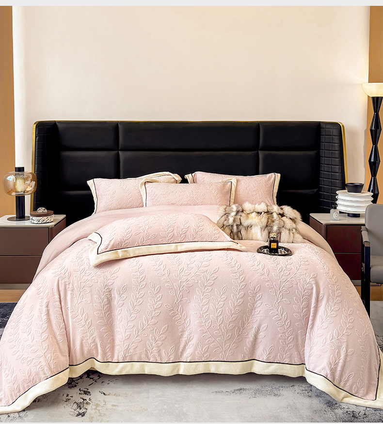 大米家居 2025新款雕花绒拼角嵌绳系列四件套 花枝-桃粉