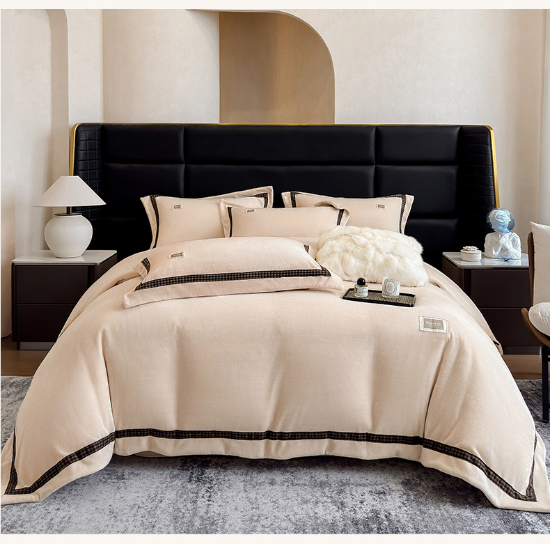(总)大米家居 2025新款牛奶绒织带轻奢工艺款四件套-卡夫系列,卡夫-暖白,卡夫-柔粉,卡夫-湛蓝,卡夫-棕咖