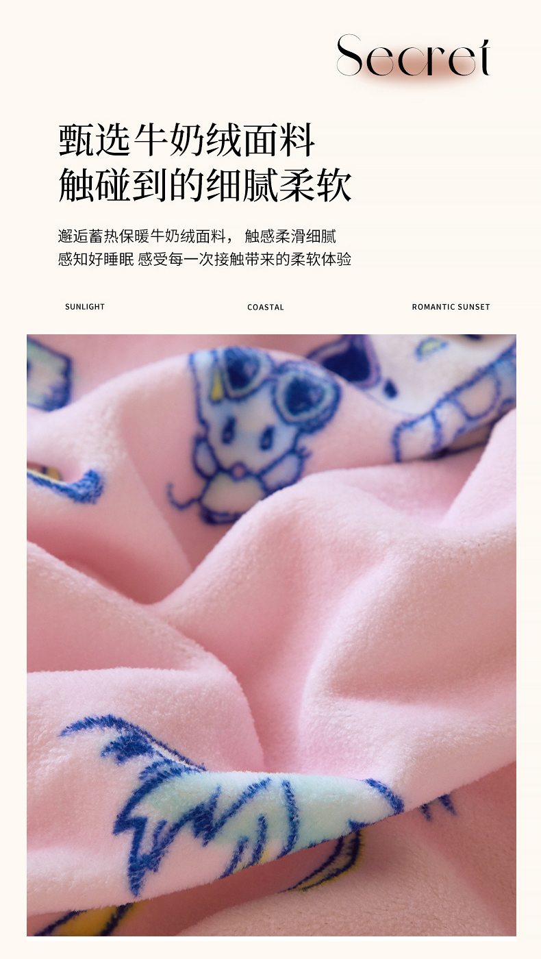商品名称:蘭菲家纺 2025新款三丽欧牛奶绒套件系列单品枕套 快乐休假