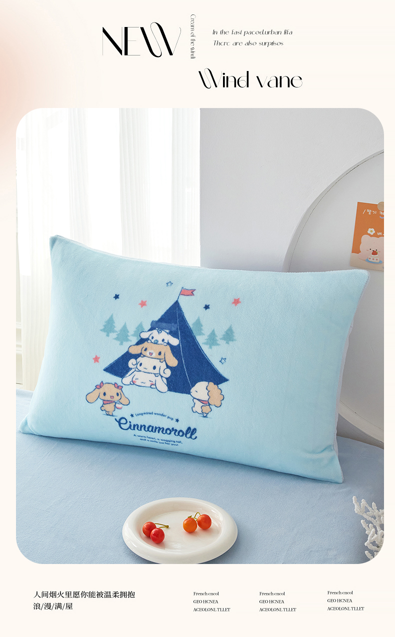 商品名称:蘭菲家纺 2025新款三丽欧牛奶绒套件系列单品枕套 露营快乐