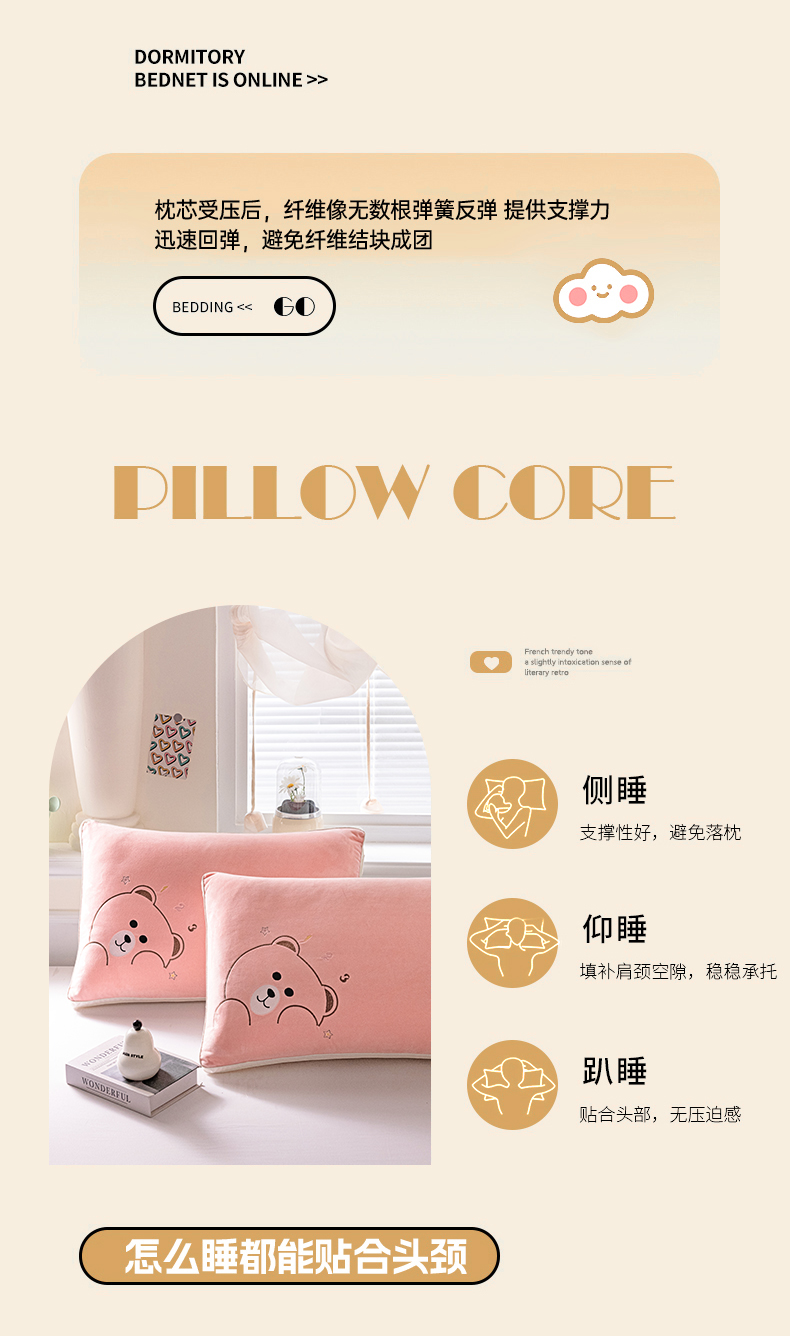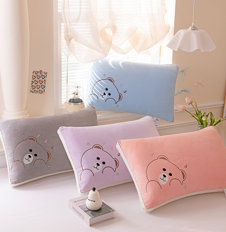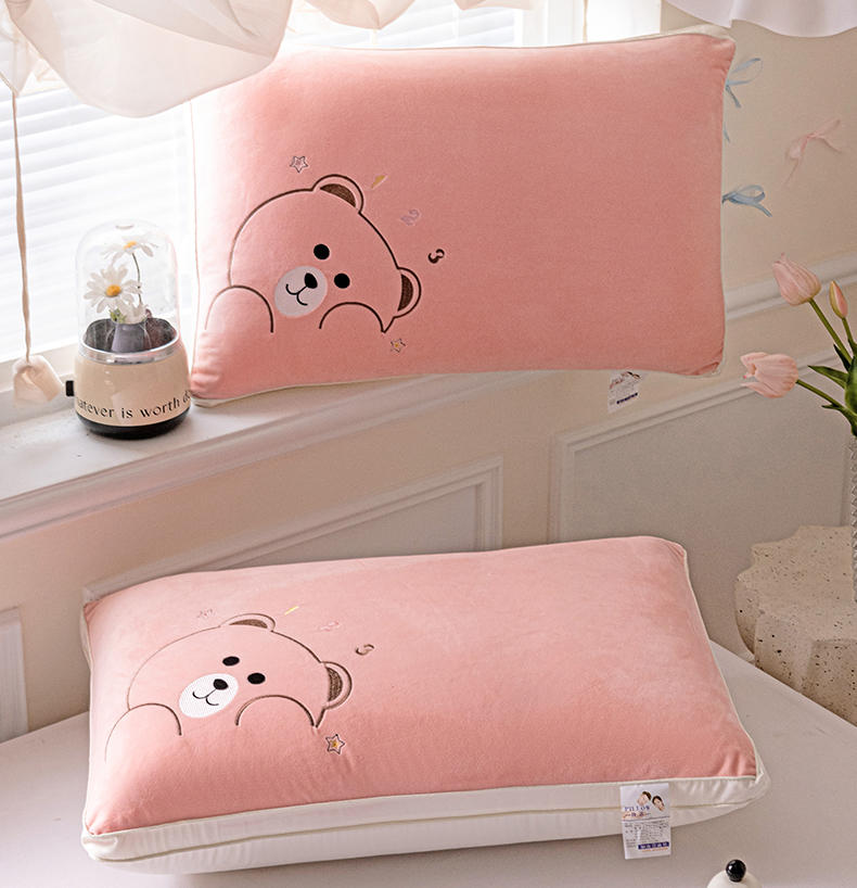 (总)亦帆枕芯 2025新款加厚宝宝绒刺绣枕48x74cm羽丝棉枕头枕芯,宝宝绒小熊-粉,宝宝绒小熊-灰,宝宝绒小熊-蓝,宝宝绒小熊-紫