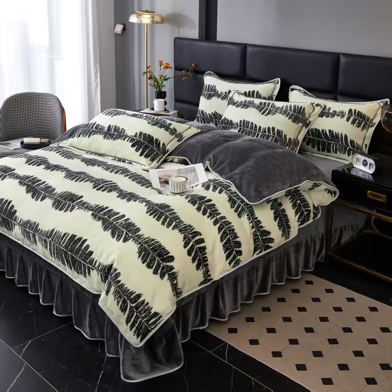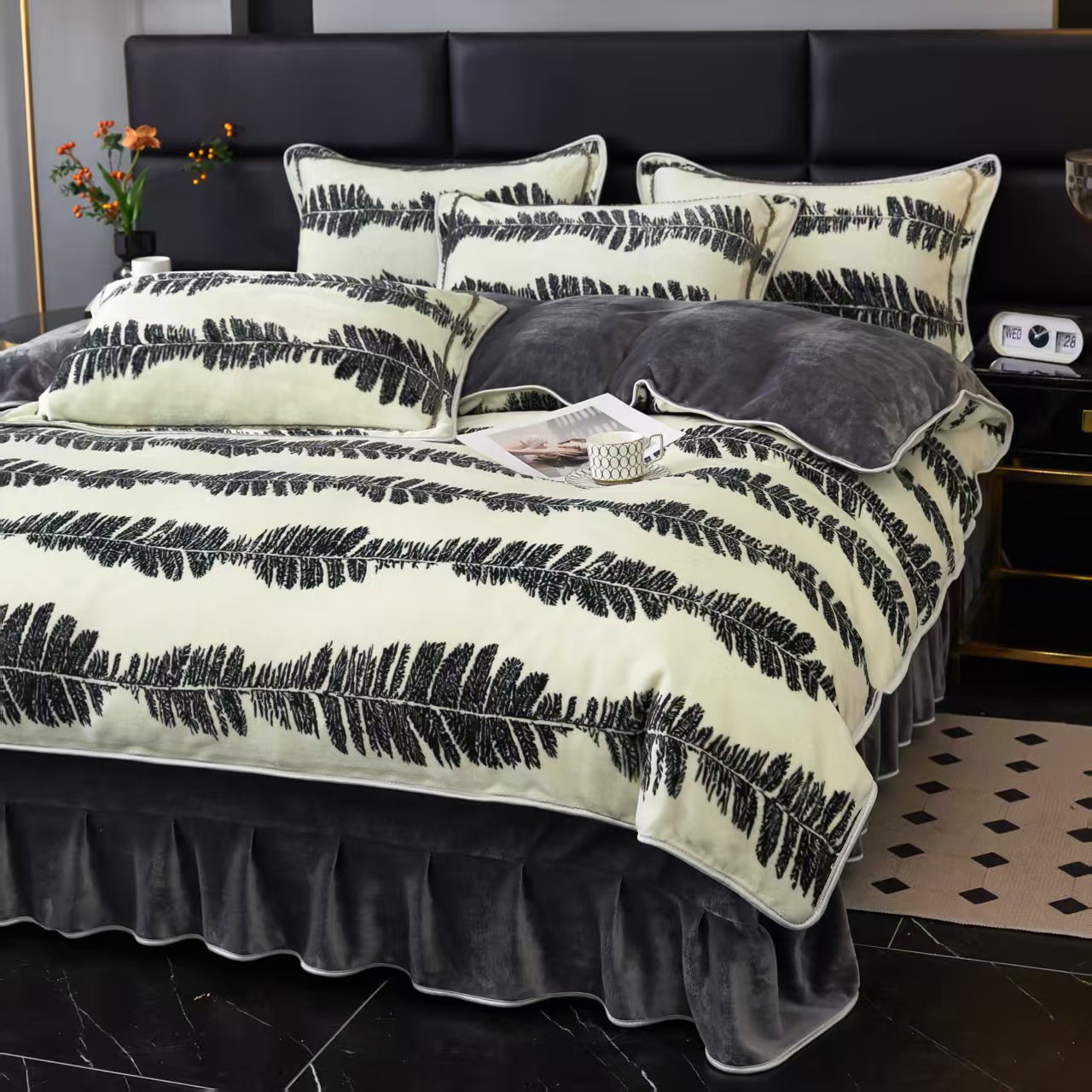 凤杰 2025新款高克重7斤加厚印花牛奶绒金貂法莱绒四件套 时尚主义