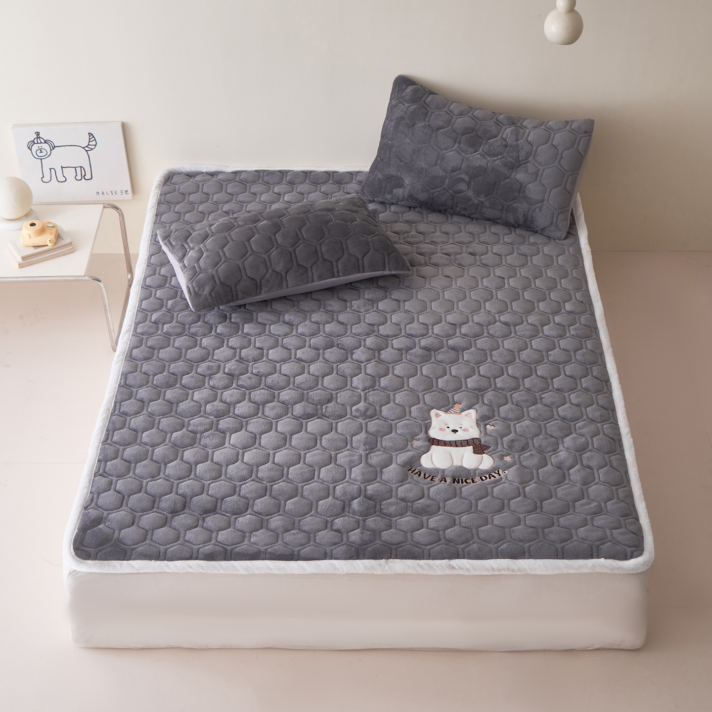 (总)2025新款纯色牛奶绒贴布绣床垫床褥子床褥垫,灰色,黄色,绿色,蓝色,粉色