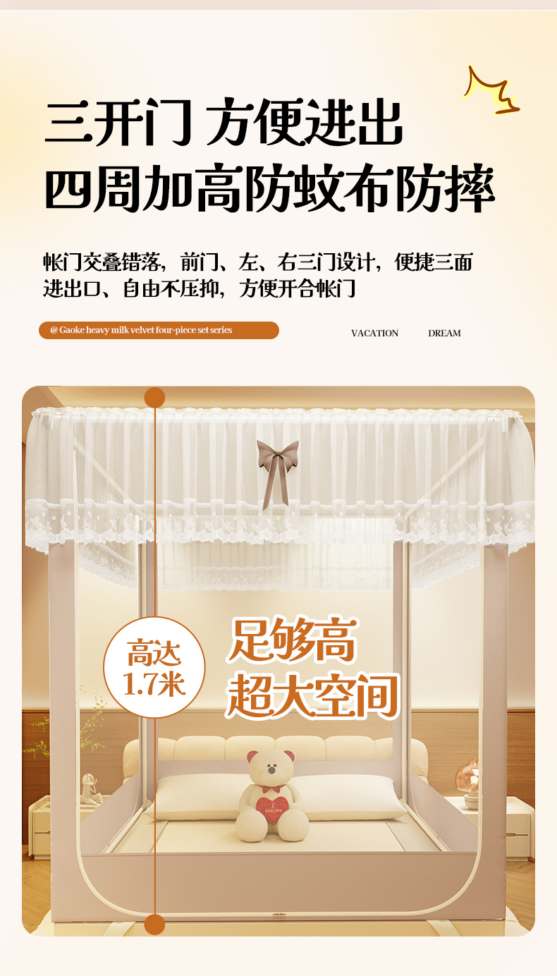 • 91家纺网 家纺一手货源 找家纺 (总)夏彩 2025新款五面保暖亲肤面料坐床拉链四季款蚊帐-88632,星愿熊,拉贝贝,羽飞舞,支架,保暖顶-灰色,保暖顶-粉色,保暖顶-绿色