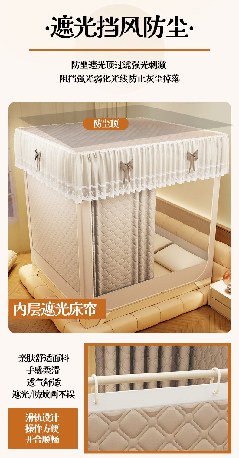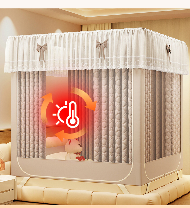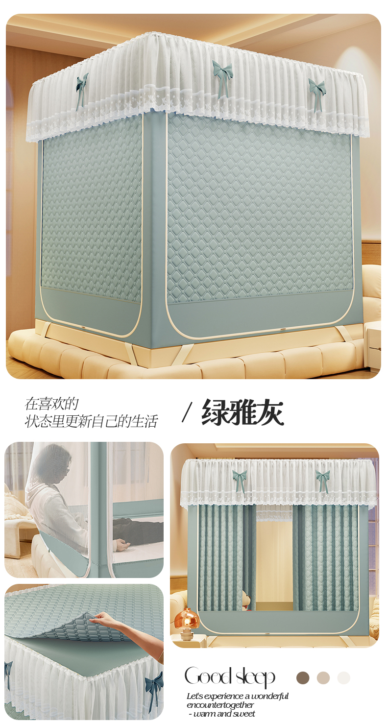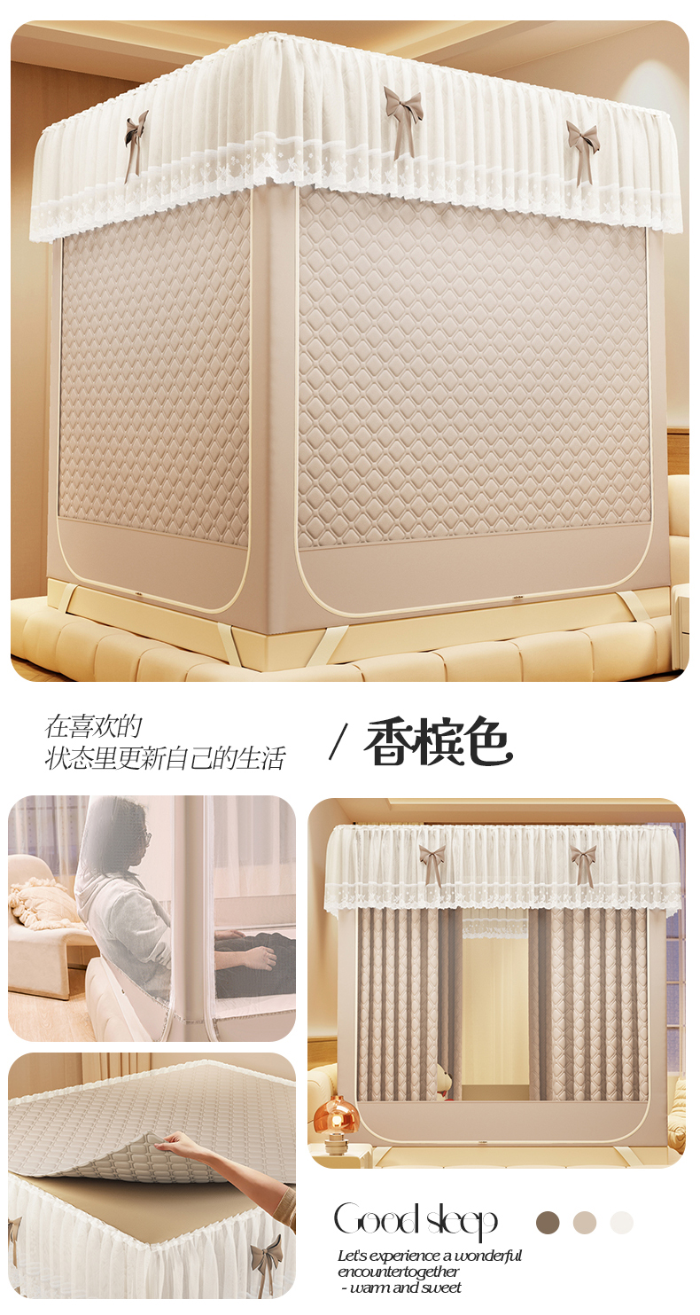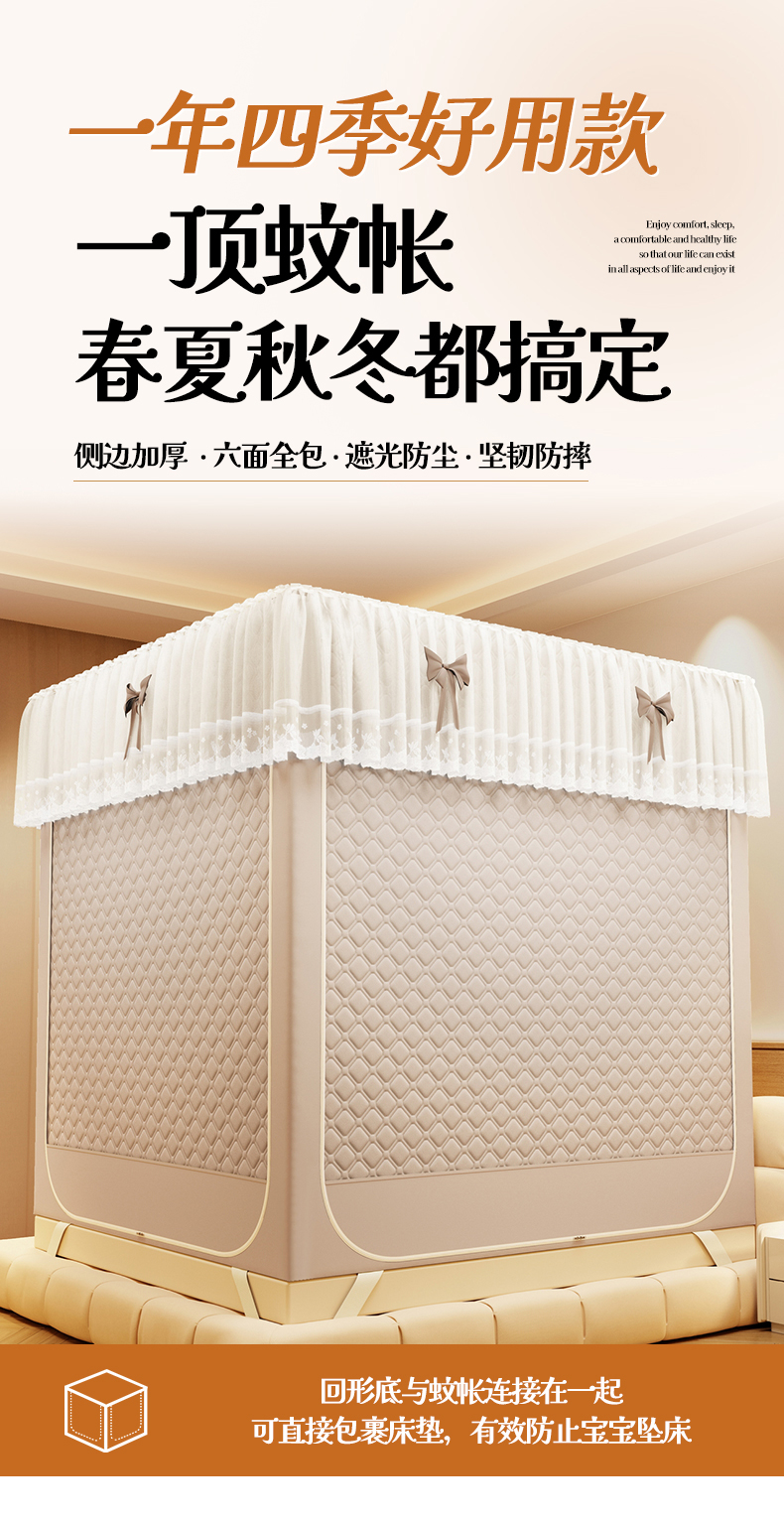 (总)夏彩 2025新款五面保暖坐床拉链四季款蚊帐-88631,绿雅灰,藕玉色,香槟色,保暖顶-香槟色,保暖顶-藕玉色,保暖顶-绿雅灰